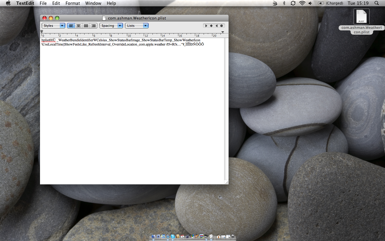 Picture 1 shows what I am seeing in textedit, Picture 2 is what it should look like according to the package info.