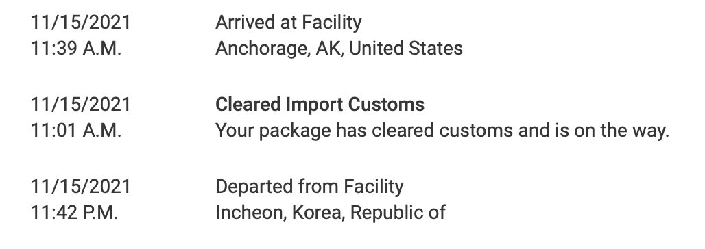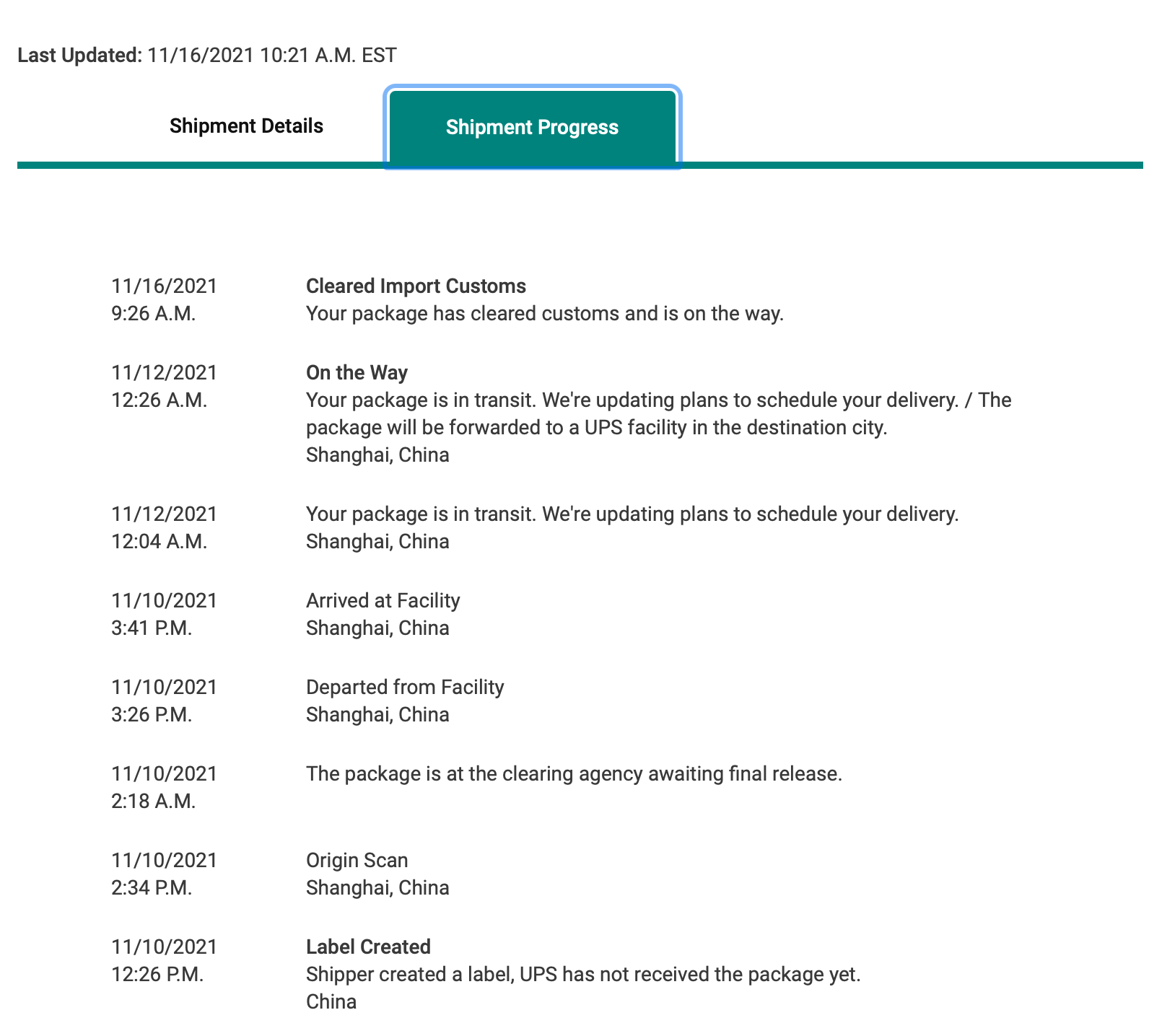 We're updating plans to schedule your delivery. The package will be forwarded to a UPS facility in the destination city.