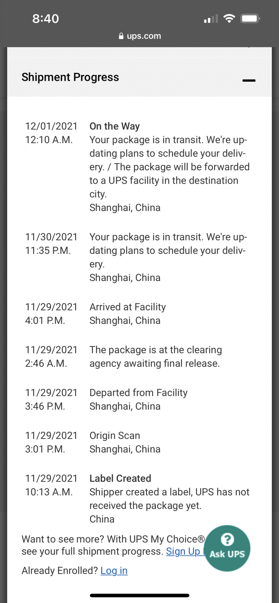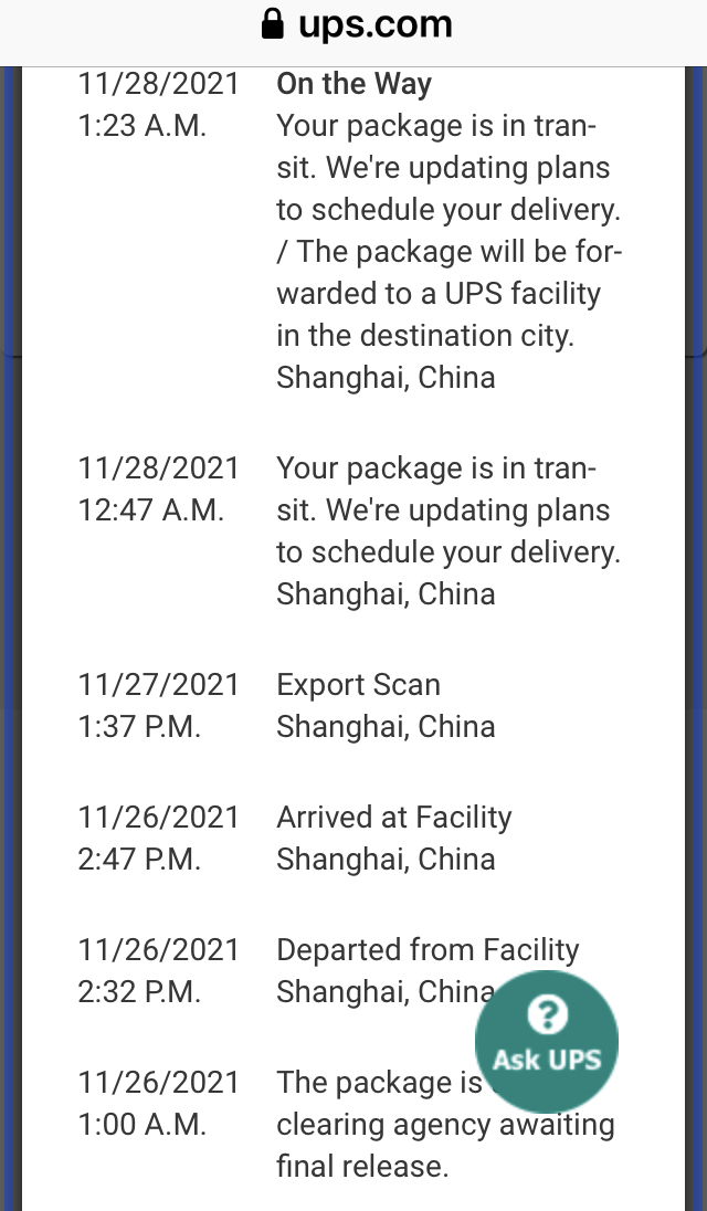 Now, more than 100 hrs since receiving shipping notice email, UPS tracking still says