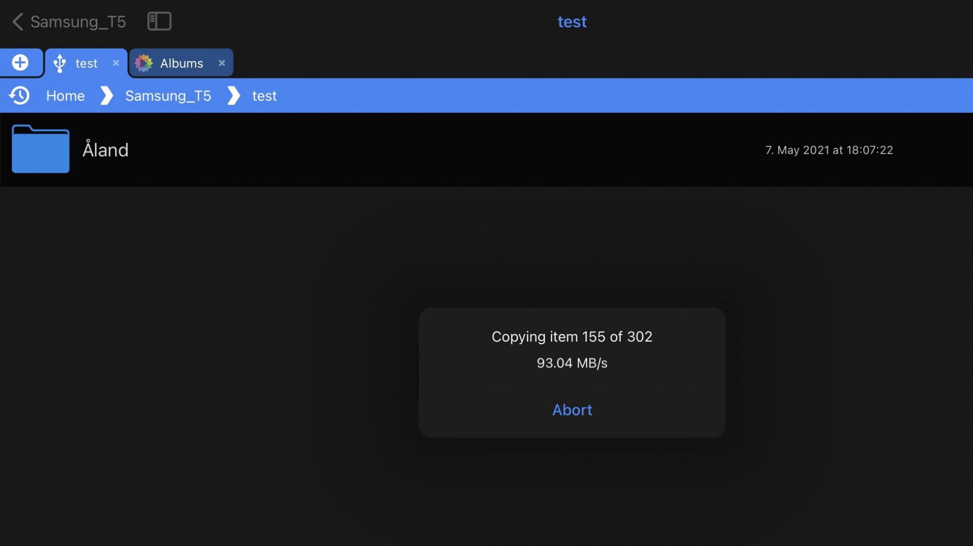 I’m using FileBrowser Professional which reports the transfer speeds as Mb/s - and on average I get 90 Mb/s +-20 Mb/s with the T5s (see screenshot; T7 is faster).