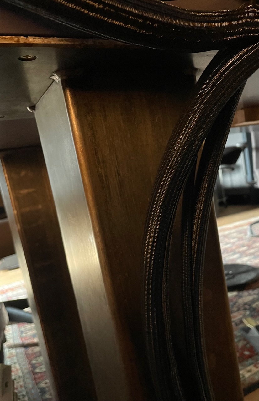 I like the woven cable protectors. They come in several sizes and you can easily combine and hide plenty of cables.Cable management is mostly under control but I could not figure out a good option to "channel" the cables from the desk to the drawer. The cable length varies greatly between drawer closed and open. Until I get a USB-C monitor that can be connected with one cable, there is no way around channeling the HMDI + USB-A + USB-C cross from the desk to the drawer. Any ideas and improvements are welcome.![]()