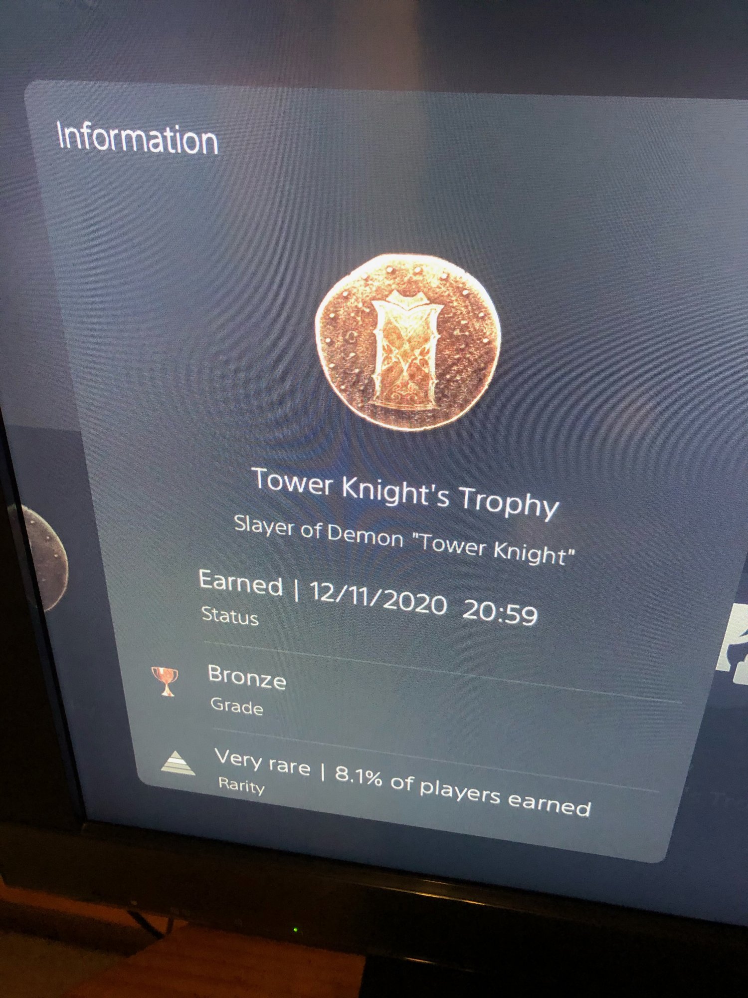 Nice! That's the giant with the shield? I don't remember anything about how to fight him but he looked so cool.My suspicion was correct. Had my first death (aside from the Vanguard Demon in the outpost, who I believe you're 'supposed' to die to) after discovering the Tower Knight. Died to him a second time, then went into the doldrums where I died 3-4 more times just trying to get back to him. However, on the third boss attempt, things paid off!