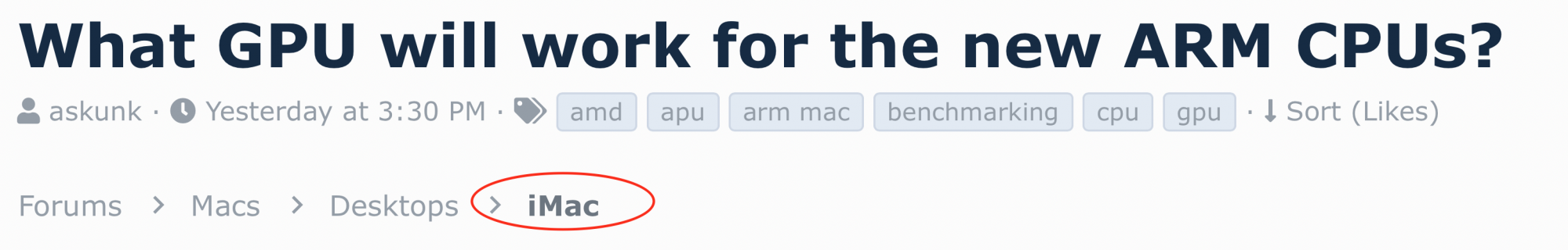 Let's swing back to ARM though. The topic in discussion here is iMac - and a late 2021 iMac could end up being ARM powered and the thickness of an iPad. While Apple hasn't proven to be able to scale ARM up to desktop class TDPs (yet) I imagine that a super light desktop would be interesting to some (fully expecting the performance wizards to jump on this).