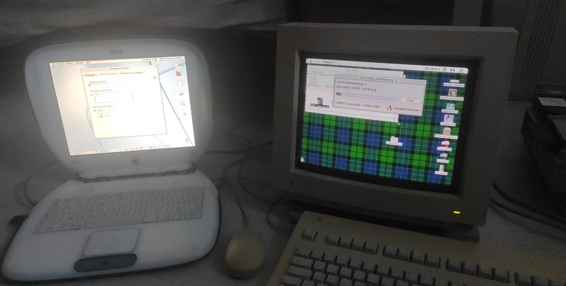 With all that said and done, I've set up a small network with the iBook (which will act as a server, I could've used my iMac G4 if I had kept 10.2 Jaguar on it, but since I'm out of CDs to burn, and that I've always dreamt of owning a iBook G3 Clamshell... The rest is history.) and the 7500 in it. So that way, I don't have to rely on floppy disks (especially after the incident I had with the older FDD!).. It's a bit slow (and for some reason my iBook tends to lock up a few times) but it works... And that leads us to the next thing I'm doing, transferring a System 7.6.1 installer onto a Zip disk. (I don't have any other storage medium capacious enough to accommodate the install files)