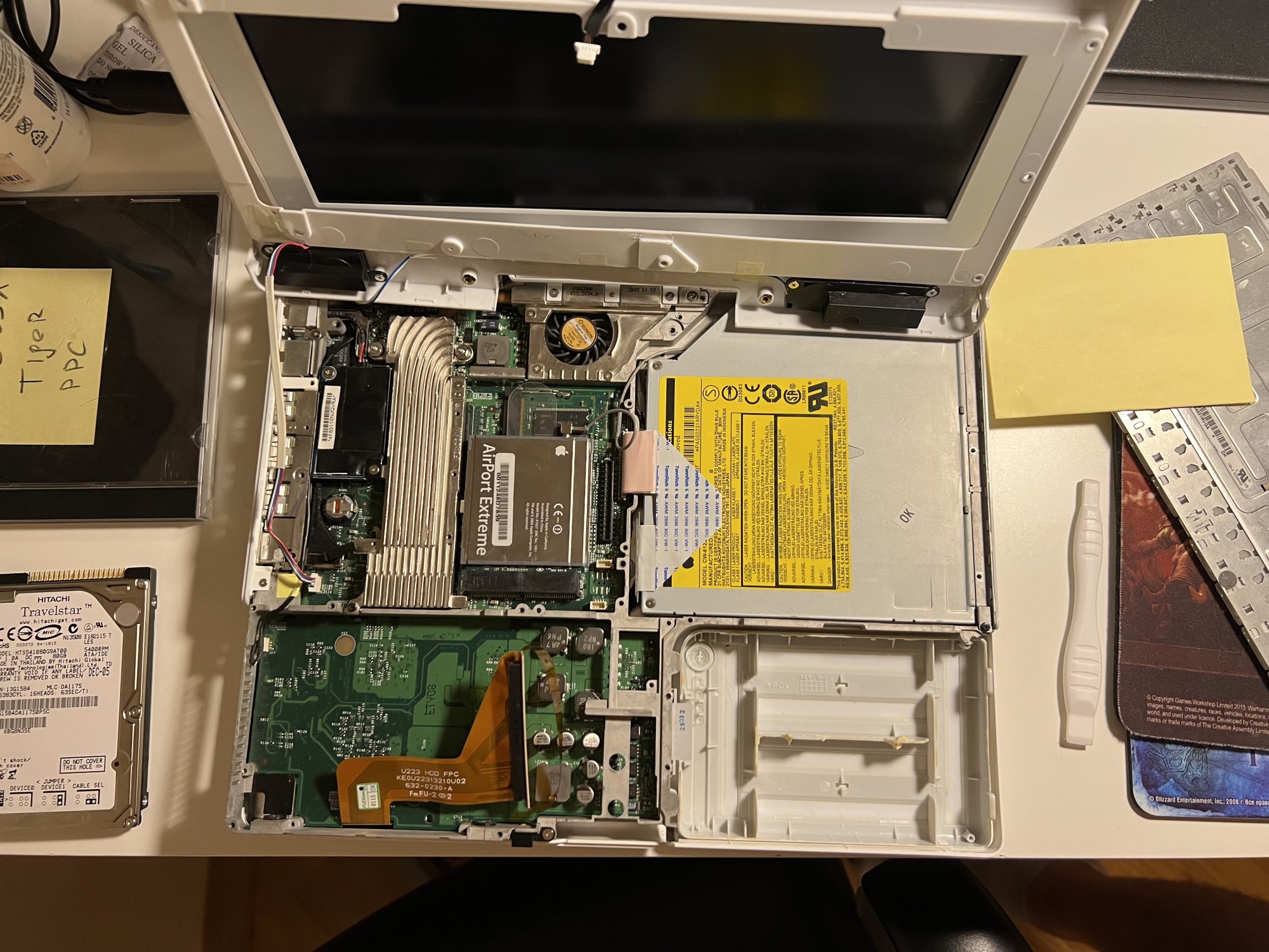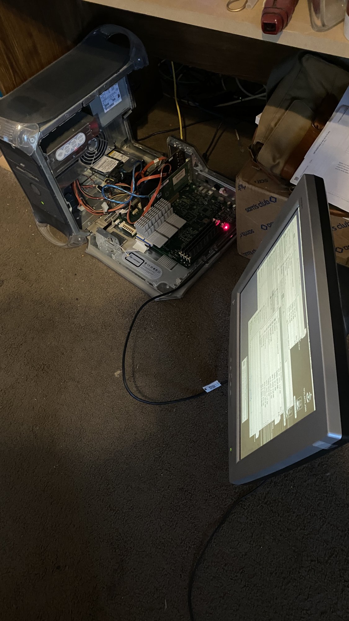 I recently found a spare SATA SSD, and installed it into my 17" iMac G5. Compared to the major speed gains of SSDs in G3s, this upgrade isn't quite as impressive... but surely anything to reduce the heat in a G5 is a good thing.