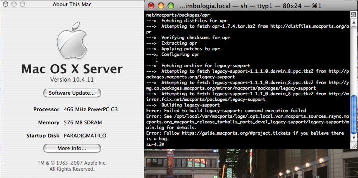 Last bit of PPC-related recent activity: I noticed macports seems to be finally letting go of supporting Tiger, on PowerPC (and possibly Tiger on Intel), as my last couple of efforts to update the iBook G3/466 have failed to build legacy-support (v1.1.1 seems to be where these troubles began).