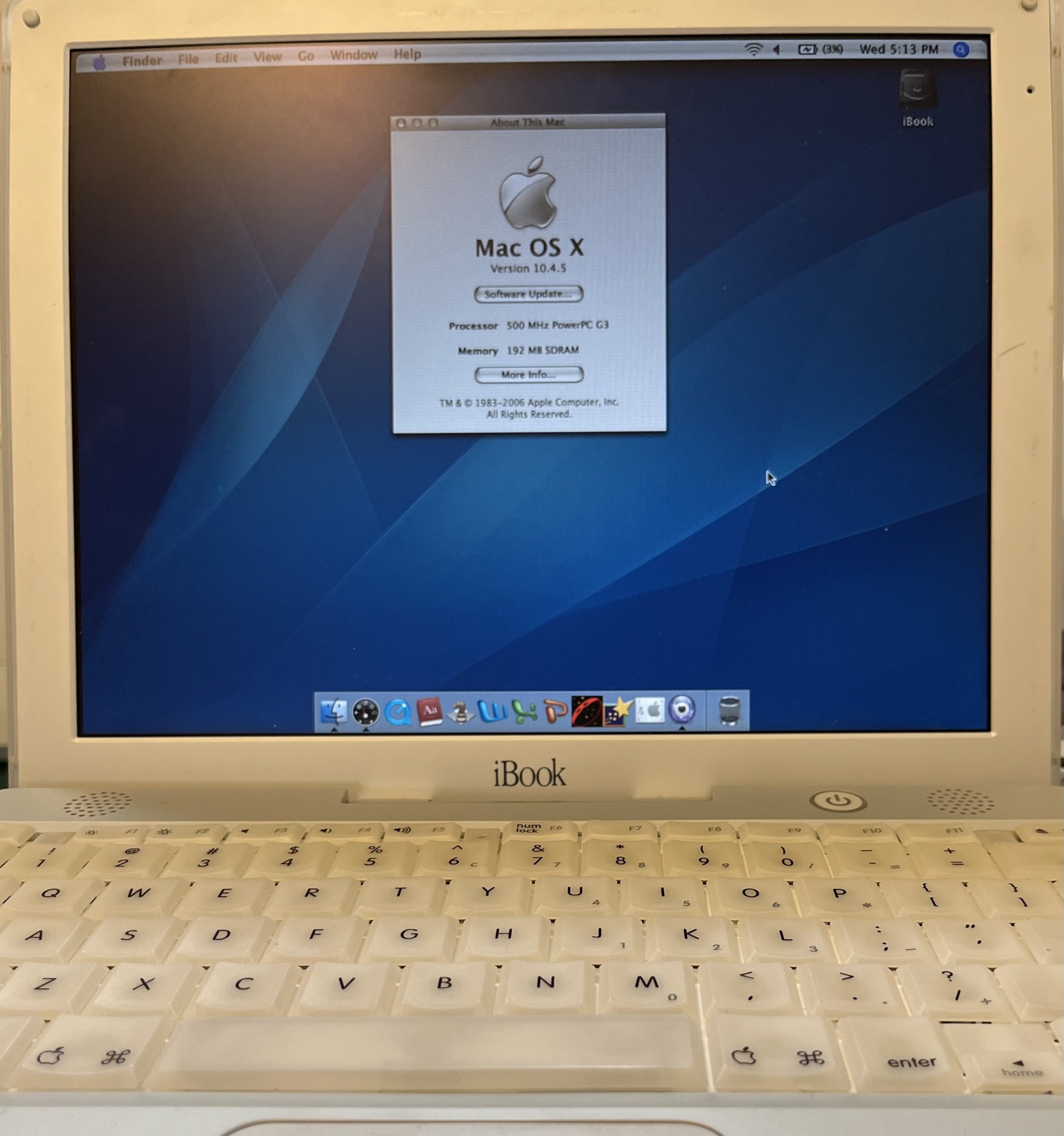 I started up my iBook g3 after it's been sitting for quite a long time. It started right up and was charged to ~75% before I shut it down for the day and unplugged it. I'll see how it holds a charge. Can't get it on WiFi so I'm not sure what if anything I will do with it. Doesn't seem worth selling. I am kind of sentimental about it!