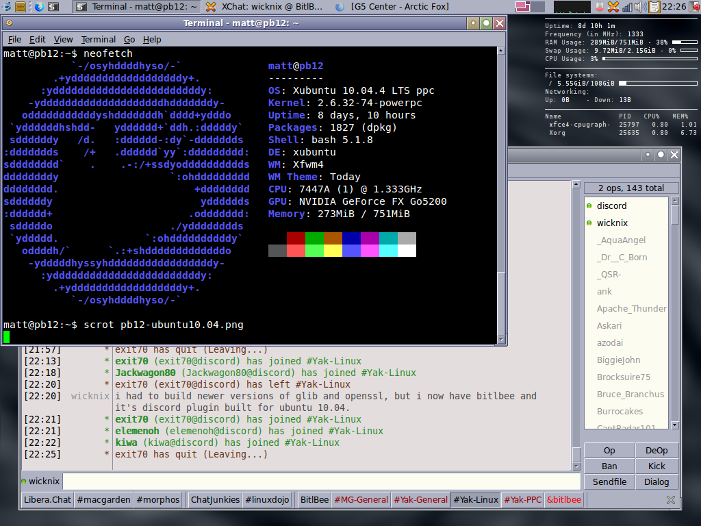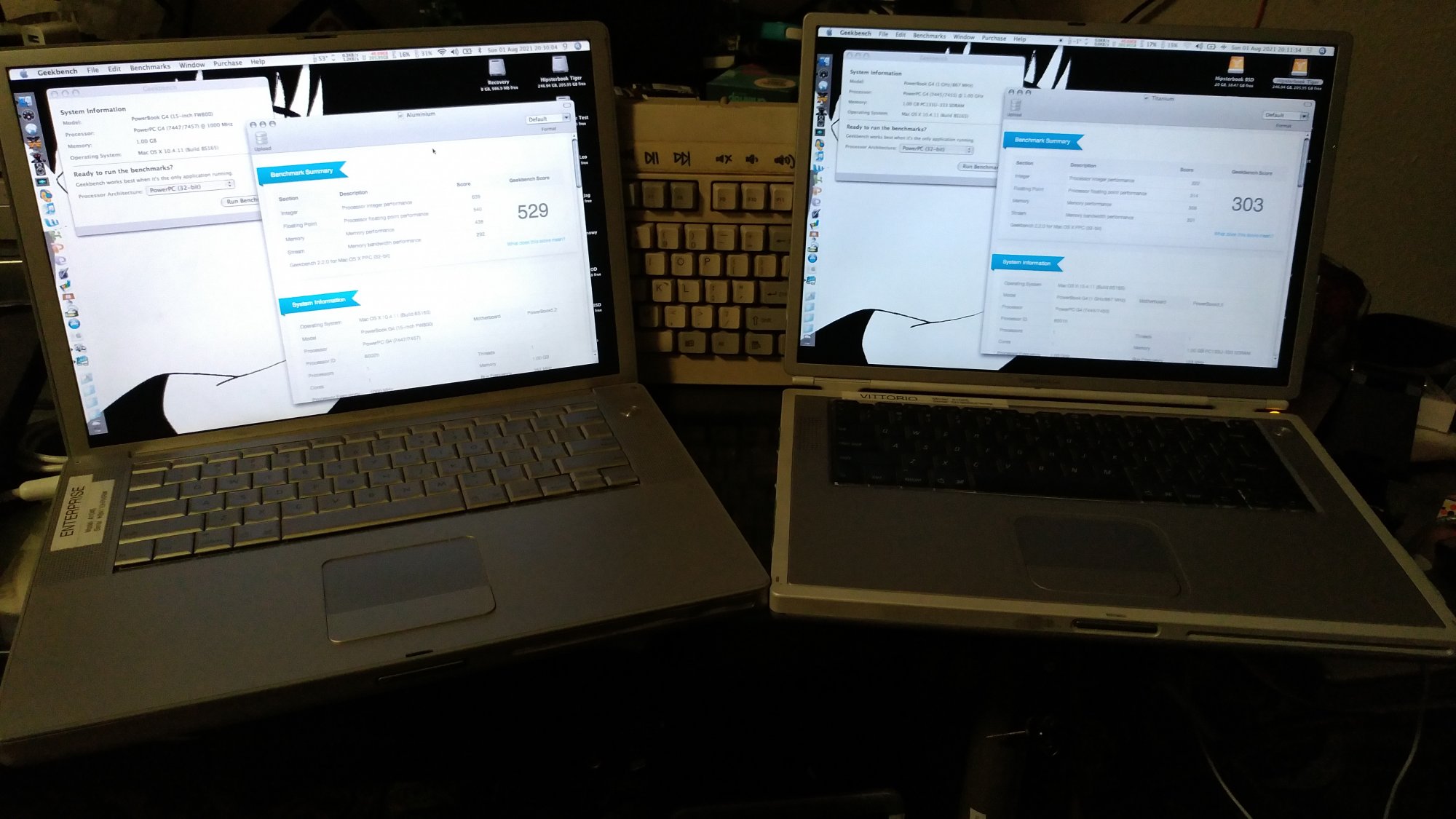 could envision the GB scores here being so different might be from using the same install drive in both machines, as opposed to using installations specific to each machine using the same Tiger DVD install (i.e., allowing system installation to configure for specific hardware), but offhand I’m not sure how the installation itself might vary.