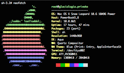 neofetch — (because everything for darwin10 was intended to be Intel only), I had some success this time.