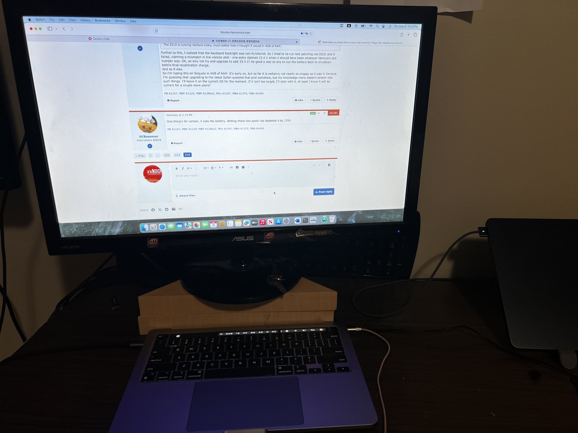 What have I done? Away from home for eight days, on a very slow internet connection. My daily driver is the 2013 MBA running Sequoia, which it seems to have settled into a bit better now. Certainly usable for basic tasks.