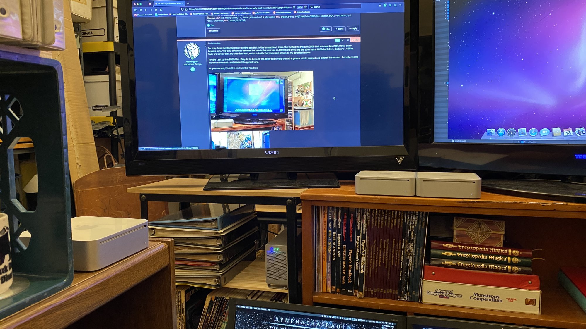 So, may have mentioned many months ago that in the transaction I made that netted me the Late 2009 Mini was also two 2006 Minis, Snow Leopard only. The only difference between the two is that one has an 80GB hard drive and the other has a 60GB hard drive. Both are 1.66Ghz. Both are slower than my very first Mini, which is inside the house and serves as my download server.