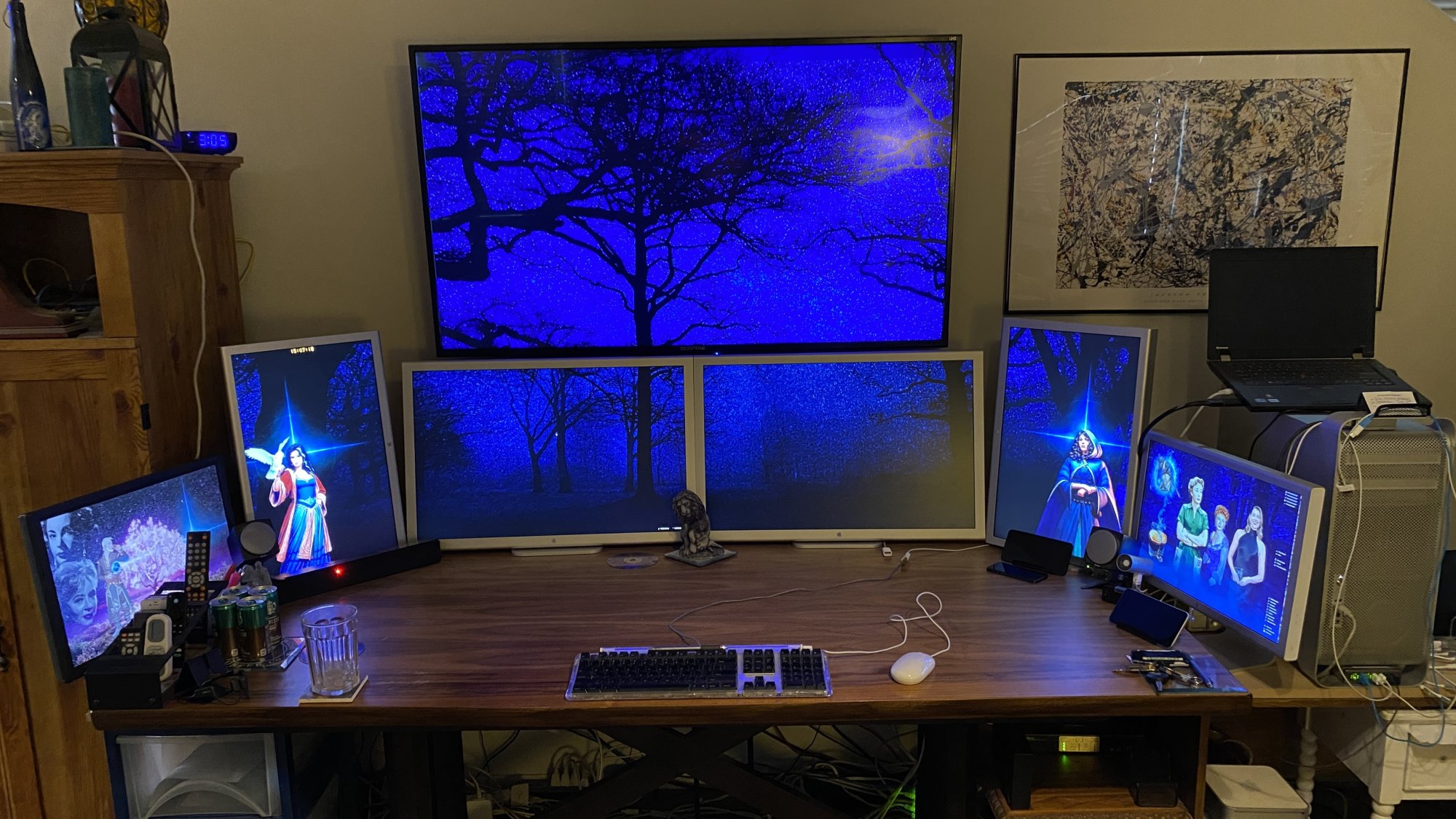 I also have my 2007 Mac mini sitting underneath the ACD to raise it up to my eye level, and have my 13" MBP underneath the 17". So that makes 4 Macs on this desk (excluding my rMBP).
