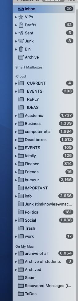 On the Mail window, on the ribbon on top right, there is a field that I can click to send messages to mailboxes. I've just noticed that the default has changed to "All Mail', and I've been clicking it for a few messages. Some of those messages are important, and I don't want to lose them. But where are they? I do not have an 'All Mail' mailbox.