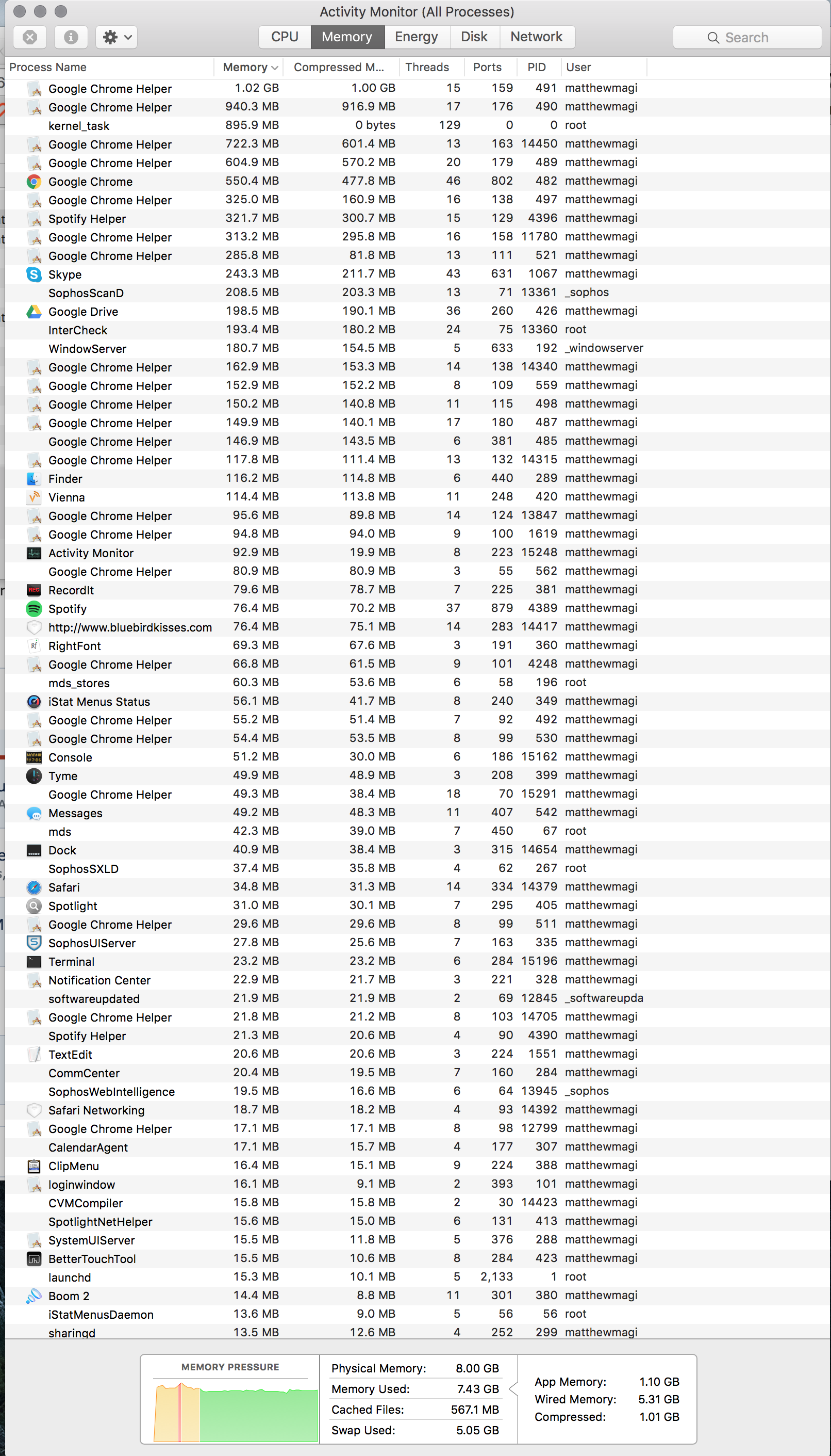So I could be running four or five programs, each with a memory footprint of four or five gigabytes (already rather large, as far as mac applications go) on a 16 gigabyte machine, and I might notice a minuscule delay when switching amongst them.