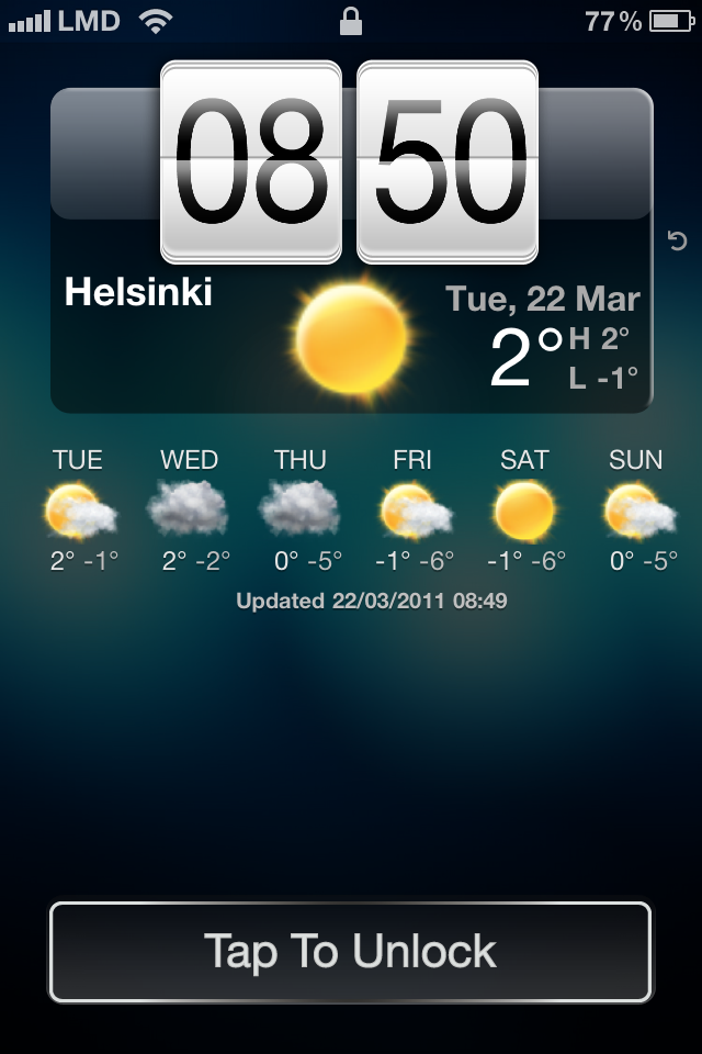 Also when I lived in the UK and did not give a dam about what temperature it was but when I moved to Finland it became an issue. Knowing how cold it is here is important, everyone has outdoor thermometers and a quick look at my lock screen gives me this information.