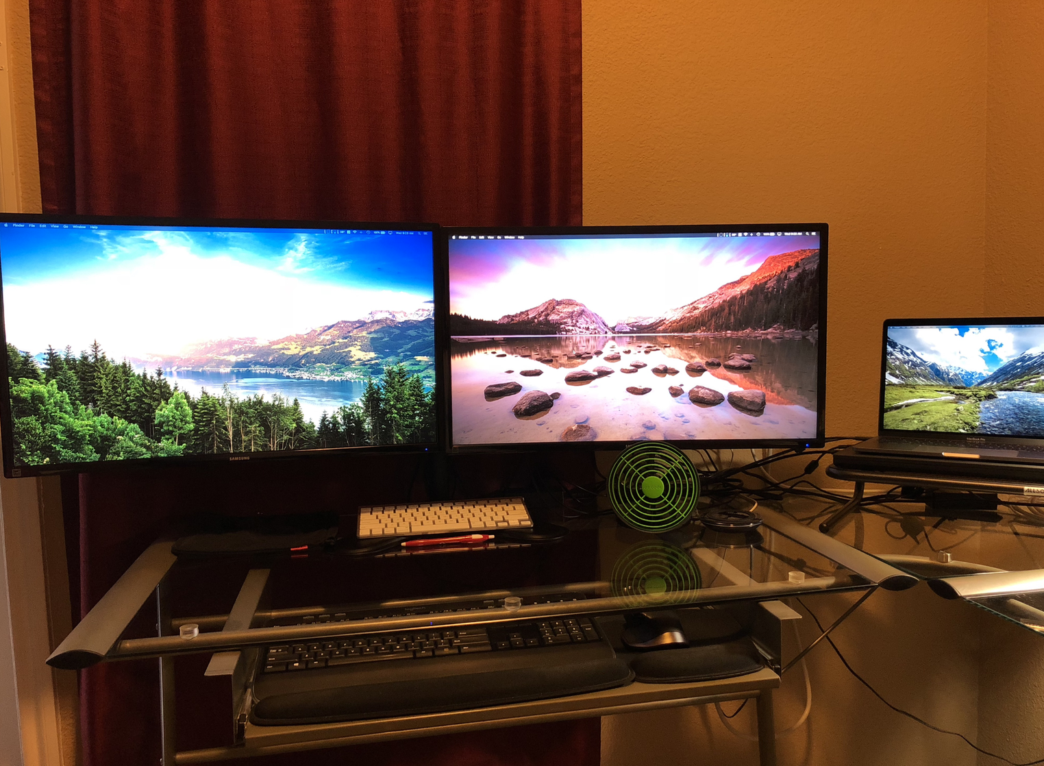 EDIT: BTW, can you share a photo of your desk setup, if you don't mind. I'd love to see how you manage 2 ginormous 32" monitors.