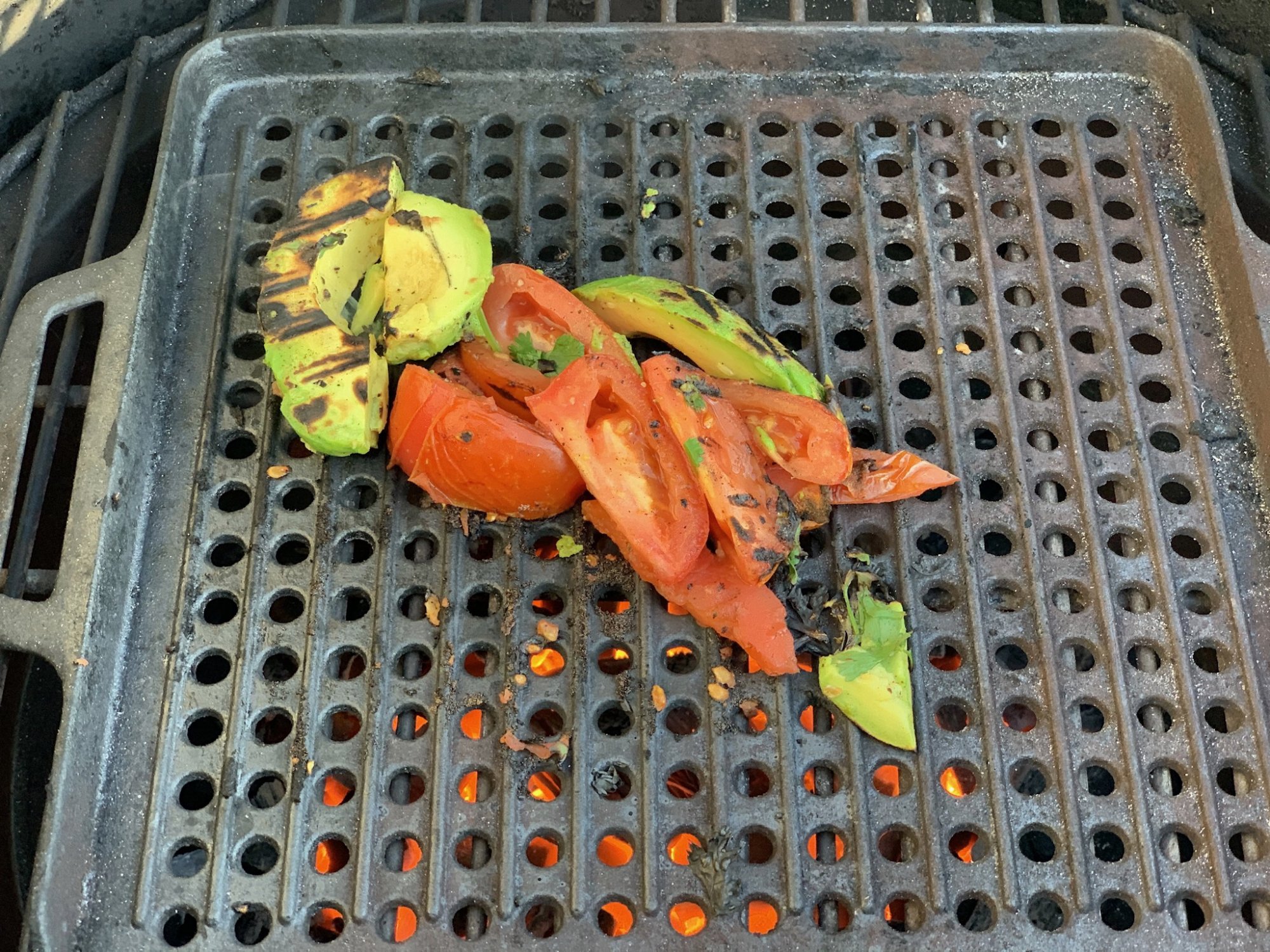So, steamed/boiled vegetables, sautéed garlic and finely diced onion; a teaspoon (large) of pimentón (smoked, sweet, Spanish paprika), added to the softened onion and garlic, and sautéed for a further minute or so.