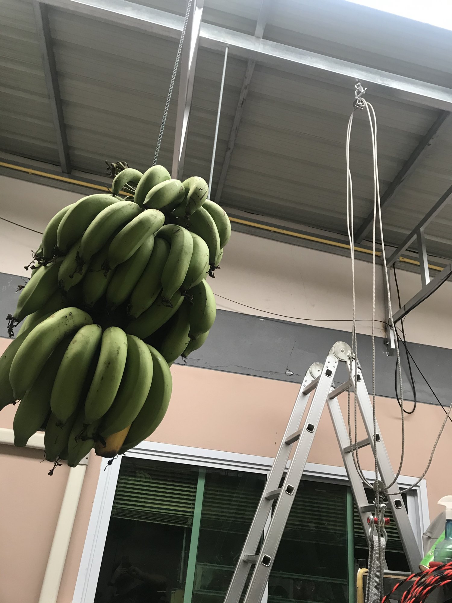 We have all of these bananas in the confines of a small lot I'm the city, so we have to cut them down, as soon a they fruit. Felling 30 foot trees in tight quarters is a pain.