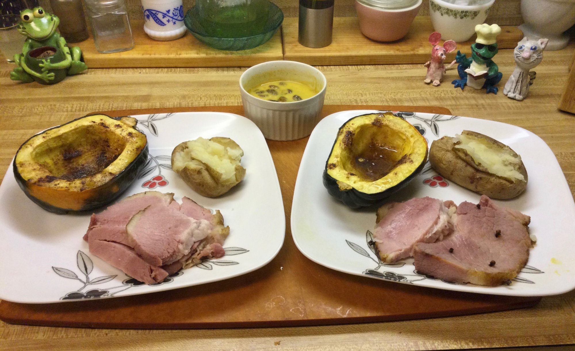 Looks amazing, simple, and love the ‘no-crust’ execution. I find most people use store-bought premade crust, which are garbage anyways, and just detracts away from the pumpkin flavor.Our (Canadian. eh!) Thanksgiving dinner (Sunday) ... sliced roast ham, baked acorn squash & potatoes, a raisin mustard sauce for the ham ... and 'no-crust' pumpkin pie for dessert. Nothing fancy, but sure flavourful and tasty for these two old timers!!