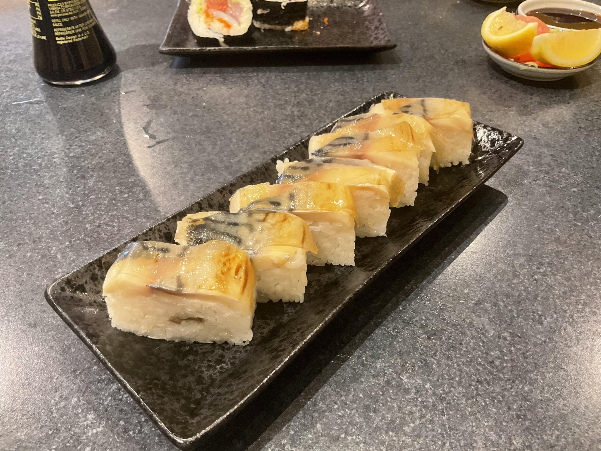 A satisfied sigh, as I am replete and relaxed after dinner.