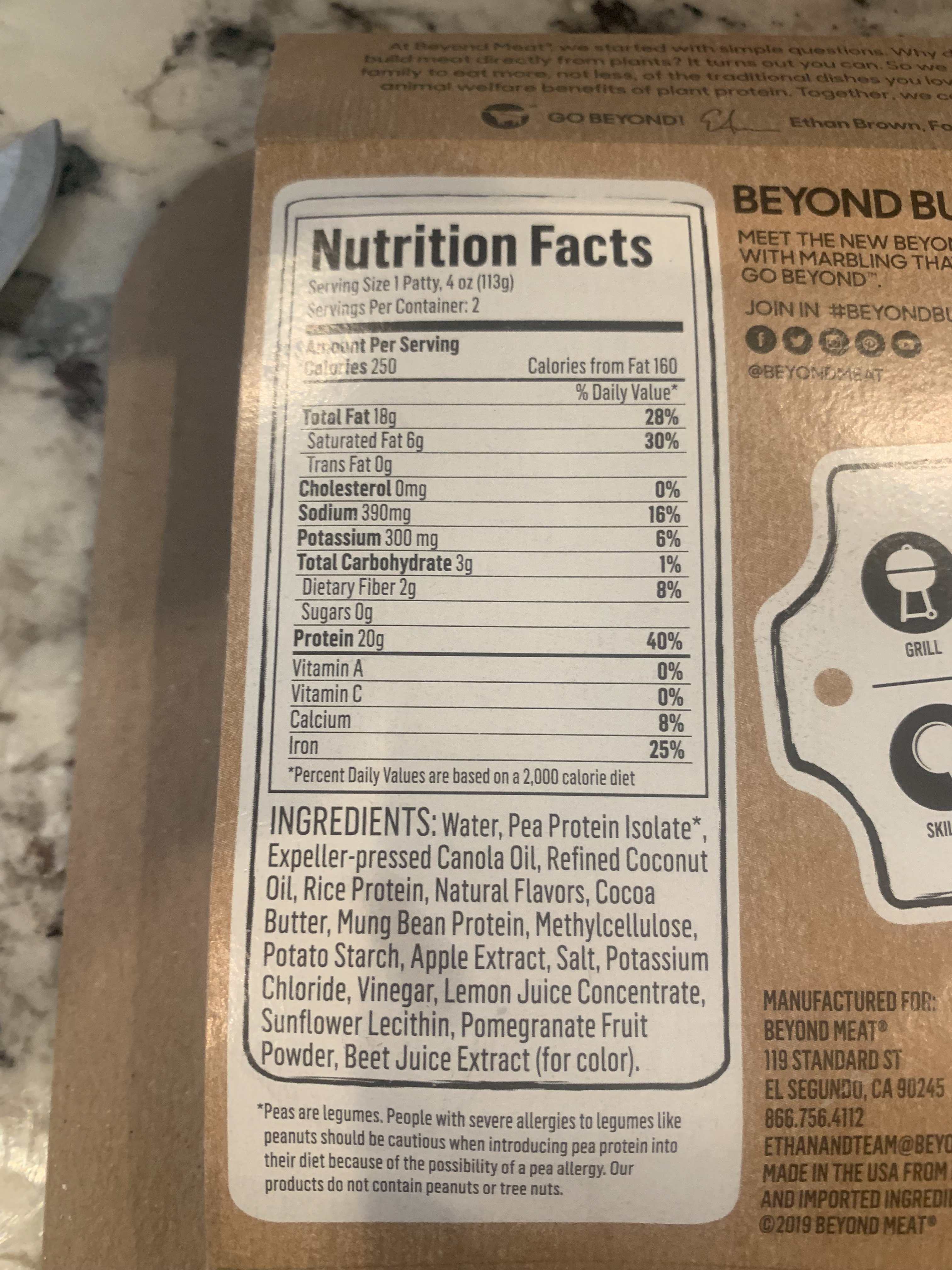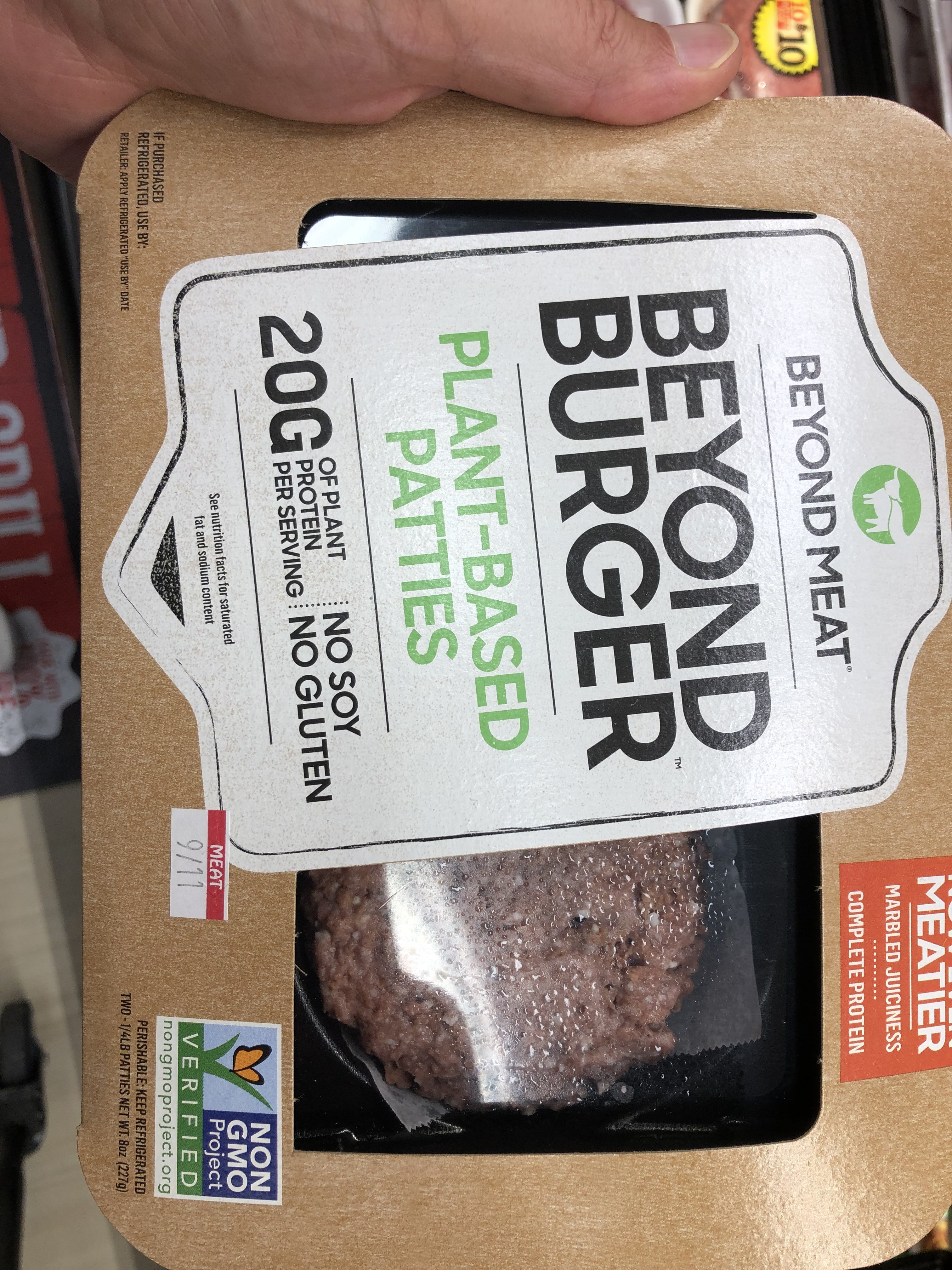 However I think I just stepped into the future, and I’m impressed! Beyond Meat, it looks like beef, has the consistency of hamburger, tastes and chews like ground beef. And when cooked (4min per side, low heat), the insides still looked pink, which is how a I like my hamburgers. Compared to the veggie burgers I was eating 2 decades ago, this is amazing, yet I could not get the wife to try it. She had Taco Bell.