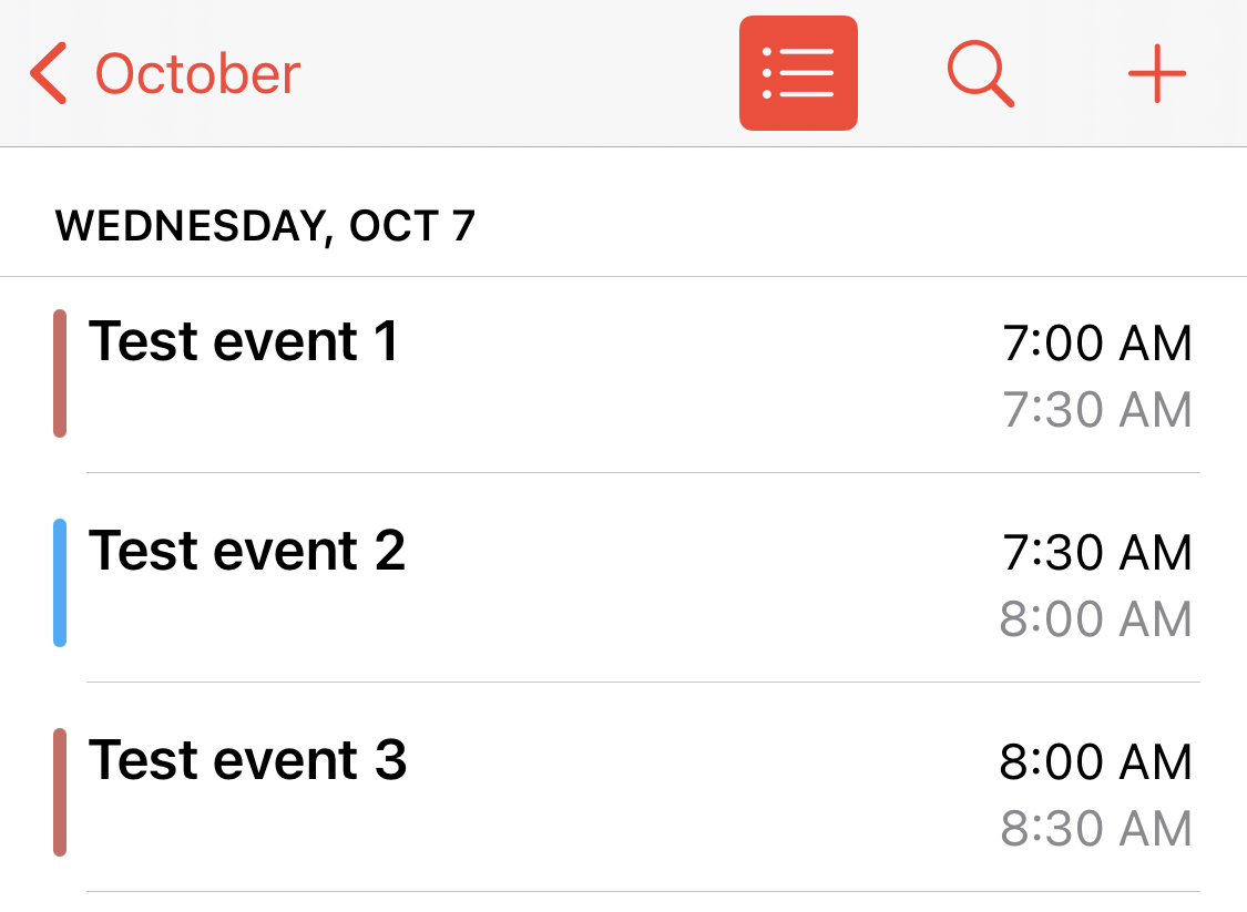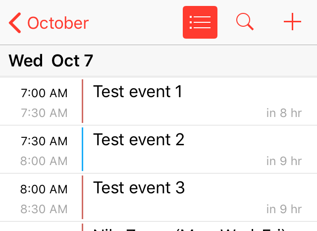 For the record, here’s a comparison of how the agenda view looked previously, vs. how it looks now. They made the text smaller; moved the times from the left to the right; removed the “In X hr (min)” text; and changed the look of the “color bars” that indicate which calendar each event belongs to.