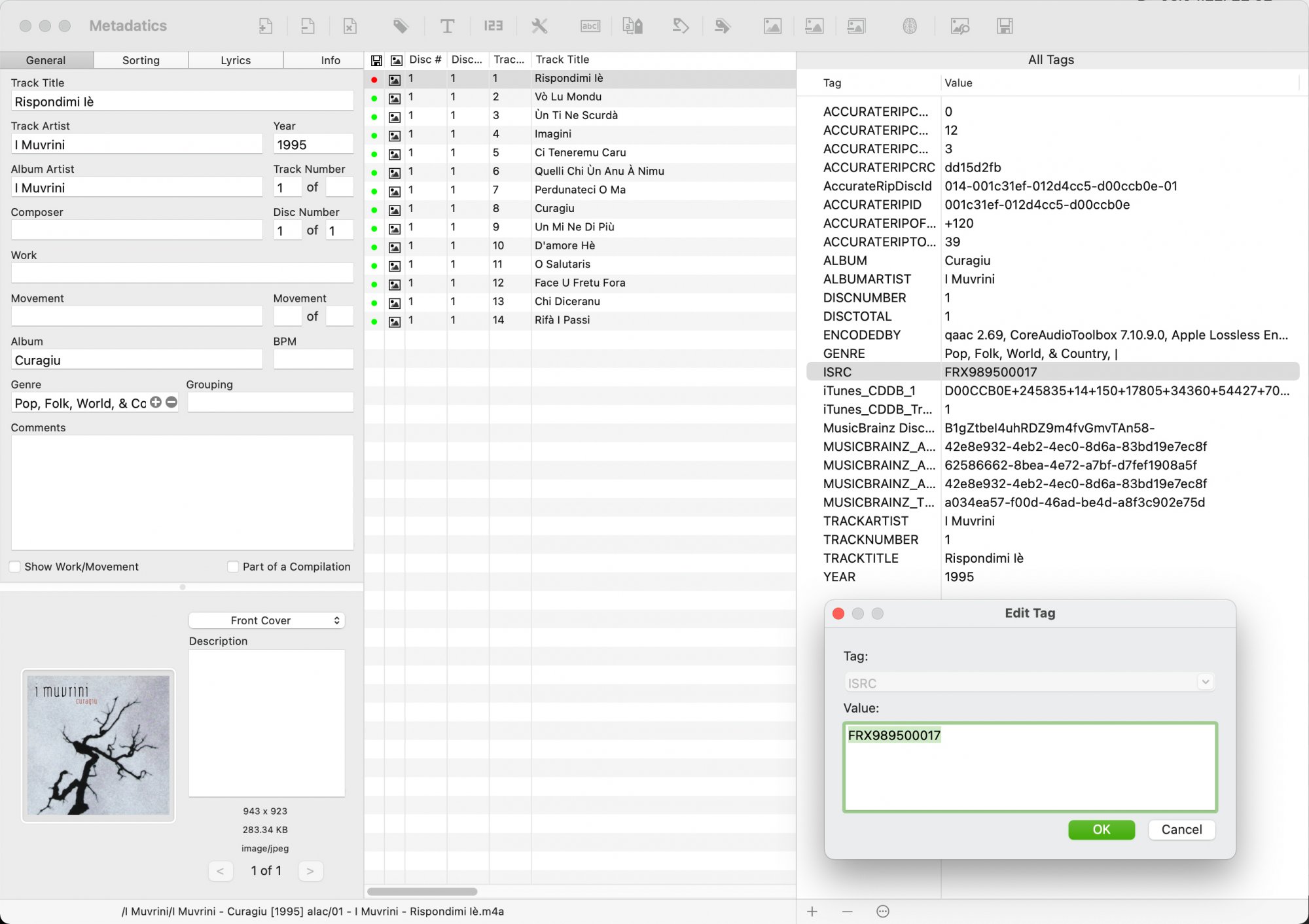 Along with the standard id3 fields (Track Name, Artist, Album name), I am also adding Track ISRC, Album UPC, Album Catalog# & Musicbrainz ID.
