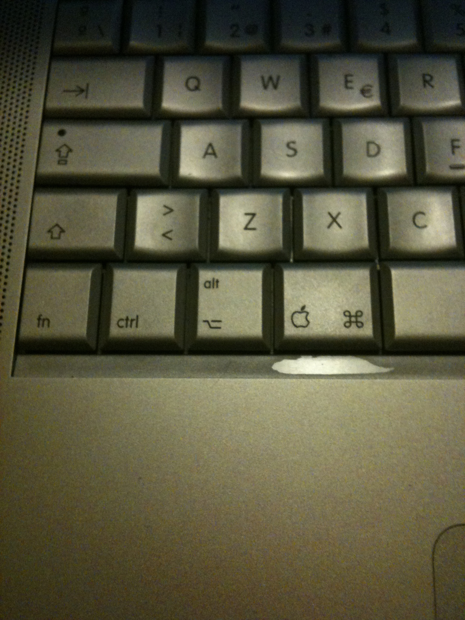 I've been having this white spot on my mid-2007 MacBook Pro's palmrest for about a year, and I cannot figure out what it is or how to get it off. I usually clean my MBP with a Mr. Clean magic eraser (which works wonderfully, by the way), but that or nothing else will get this white spot off.