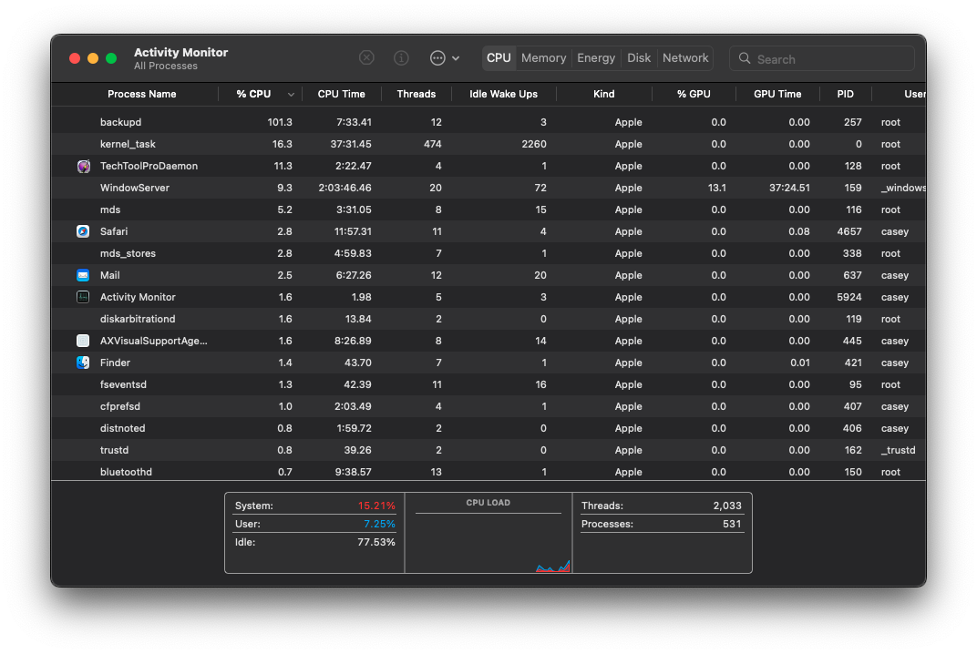 The TM drive is a WD external drive (7200 rpm 3.5" in a case) connected by USB-C / USB3. I'm surprised it smashes the computer so much -- as bad or worse as it ever did on her ancient intel iMac. The m1 is basically unusable when TM runs: the mouse is jerky and stuttery, Spotlight takes forever to find common aps, etc.