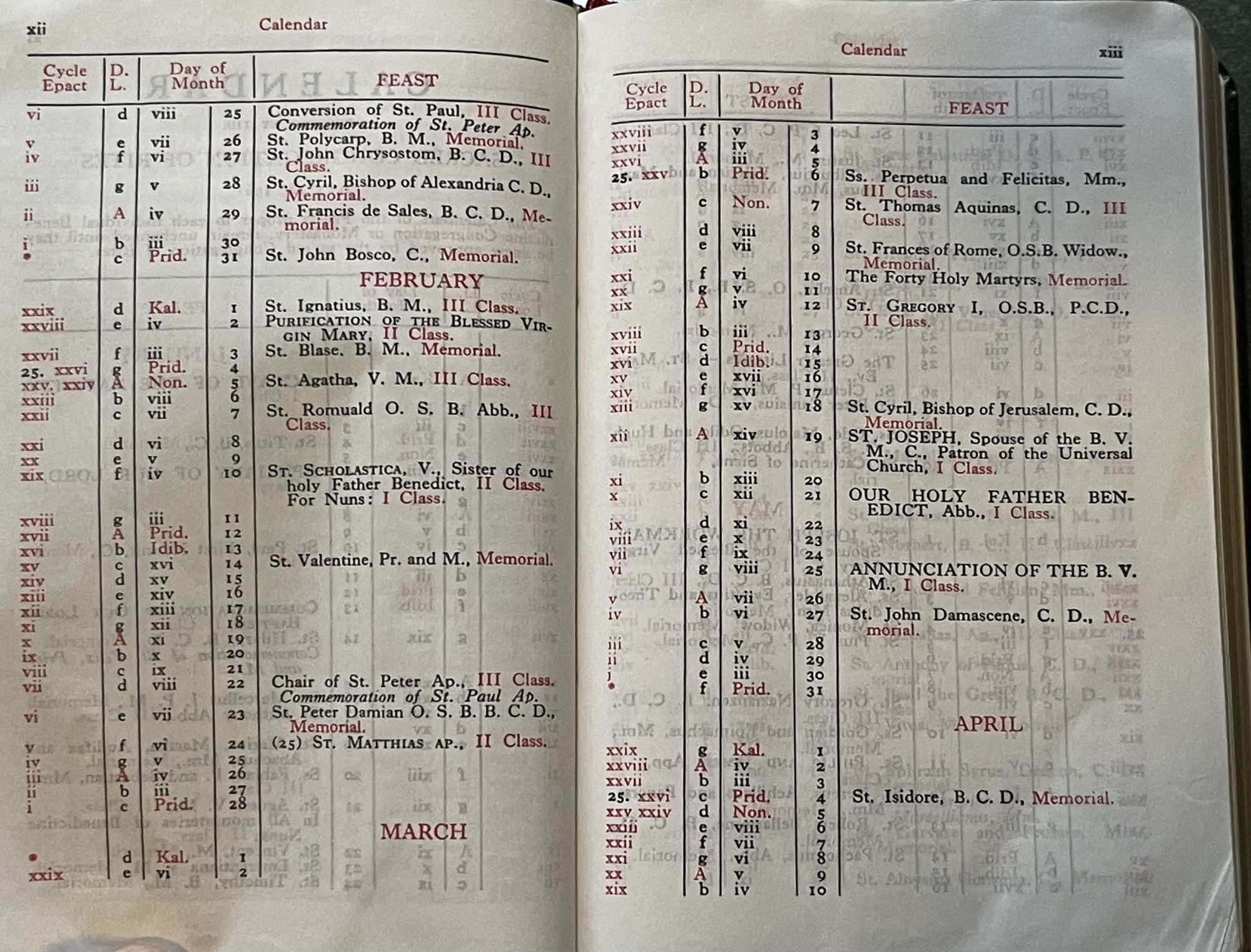 One common misconception is that when pope Gregory released the Gregorian Calendar - which we use - everyone complied. In reality it took several centuries for the world (even just the west), to adapt. As a matter of fact, even within the Church itself the basis reference remained the Roman calendar, as shown by this picture of my Monastic Breviary. You can notice that on the third column, under days of the month) the Roman calendar is still used (Ides, Nones, Kalends etc).