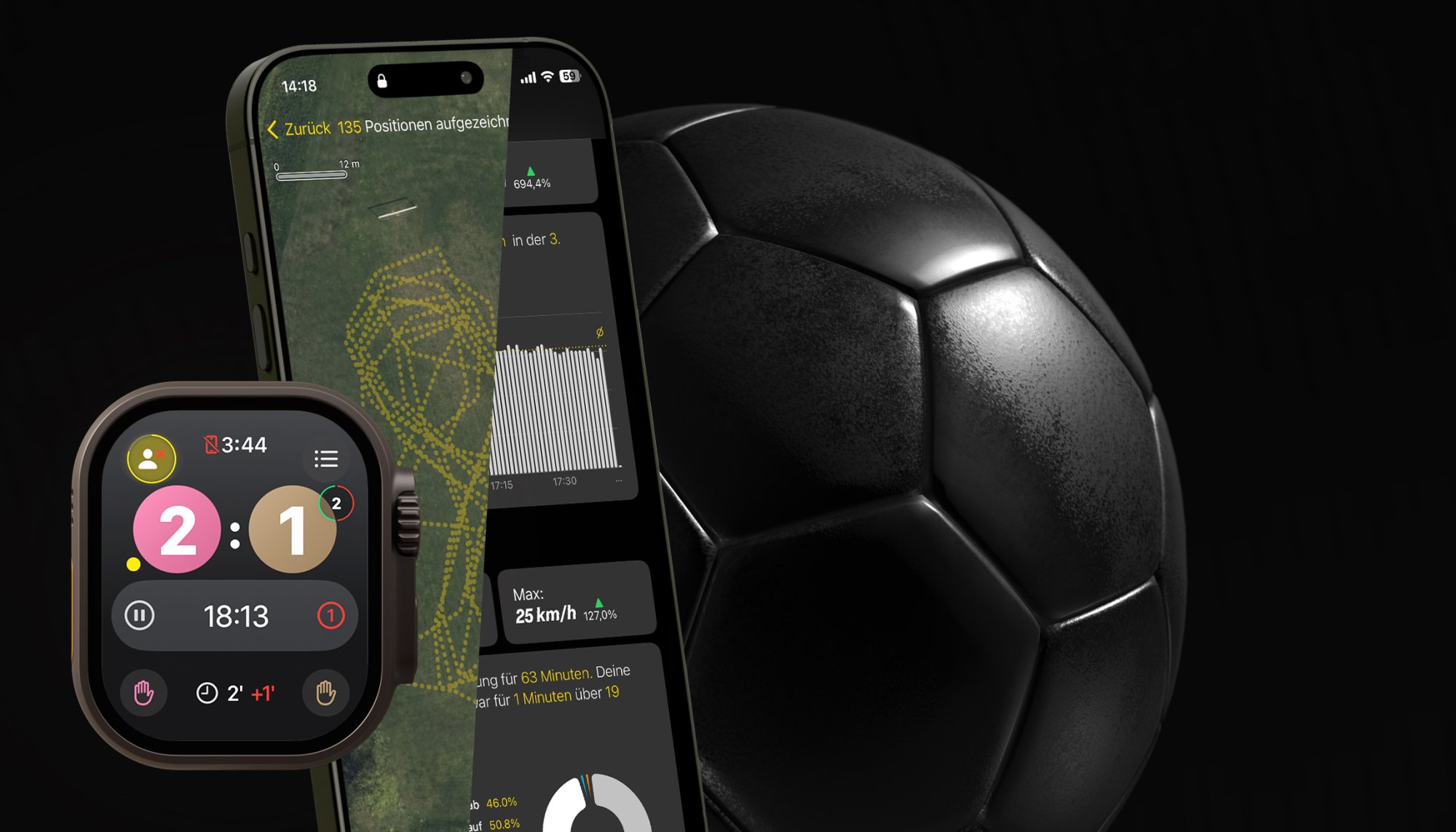 Fitness Tracking: With the Watch app, you can now also record fitness data during a game. Distance, speed, heart rate, performance, and calorie consumption are tracked for every minute of the game and visually presented in the iPhone app. For all performance data, there’s a trend analysis that compares your data with the average of the last ten recorded games.