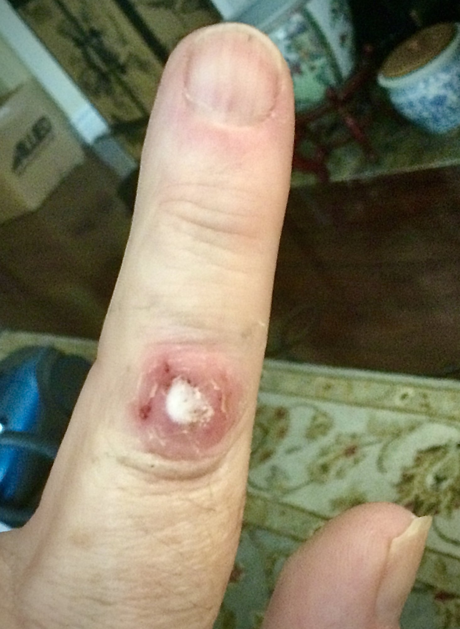Maybe of interest or not, I’ve had this wart for several years, tried to use one of the commercial home freeze solutions, but it did not work so I just ignored it for a time, before deciding to tackle it again. It’s noticible, but not horrible looking when I’m not burning it with acid.