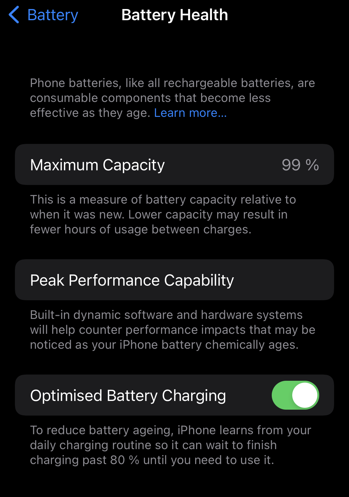 Yea I'm 97%, and my wife uses hers way more and charges with the puck. I was amazed she is still 92-93%I know this was satirical but I checked my wife’s XR out of curiosity and it’s at 91% after 2 years and she is really hard on it. She didn’t even know to check the battery health. I aspire to be that nonchalant about my phone and to use it as it was intended.