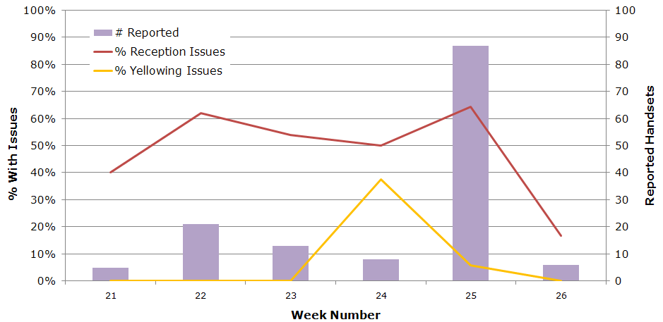 Not really in percentage terms - just that most of the phones being reported are from week 25. I used the data from mykull's spreadsheet to pull this chart together (attached in this post - only including weeks with 5 or more phones reported).