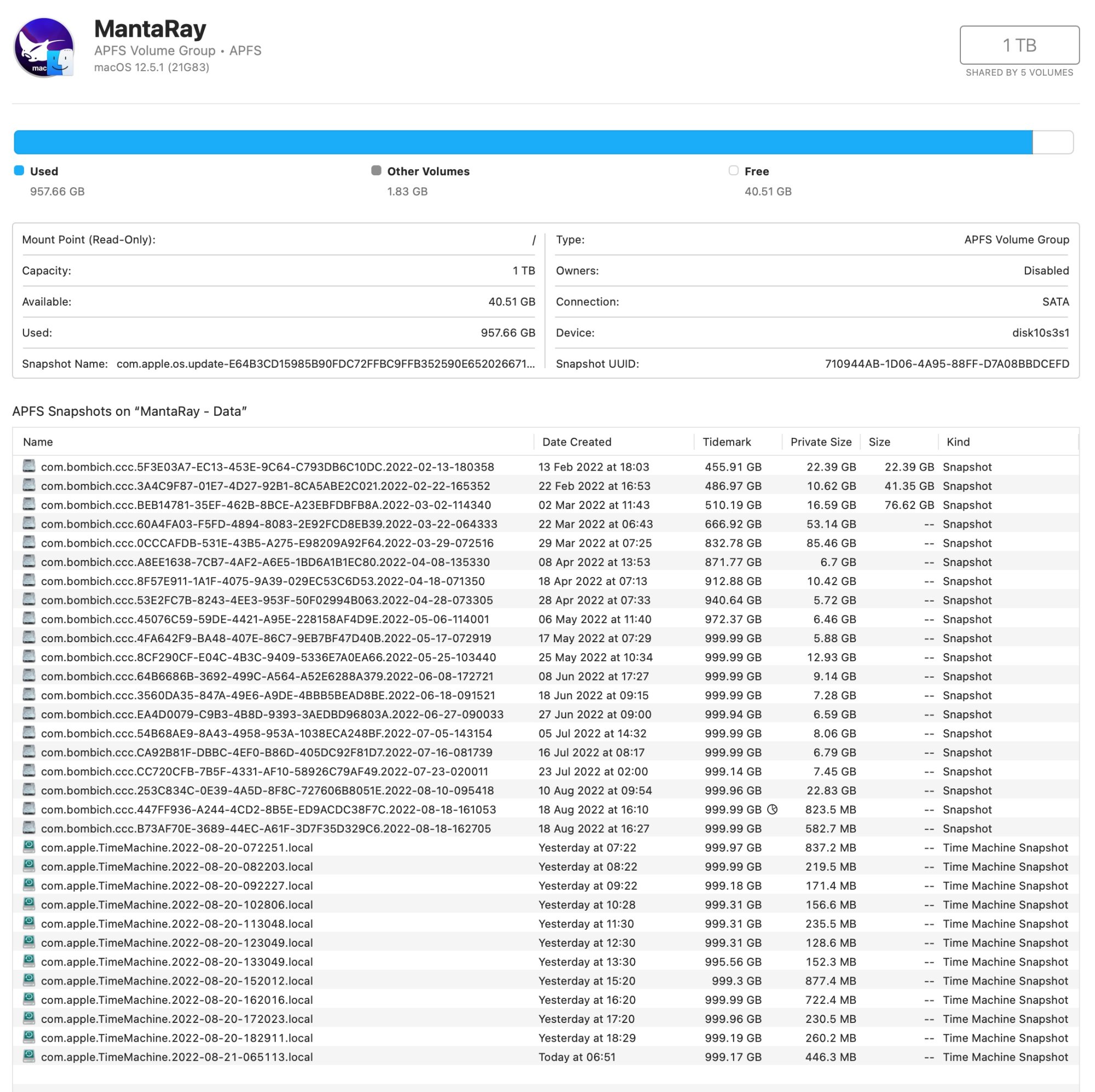 I have Moneterey installed on a 1TB SSD. In disk utility it shows as 952 GB used. But there is no way I have that much stored on there (well, that I know about). CleanMyMacX shows there are nowhere near that GB of files.