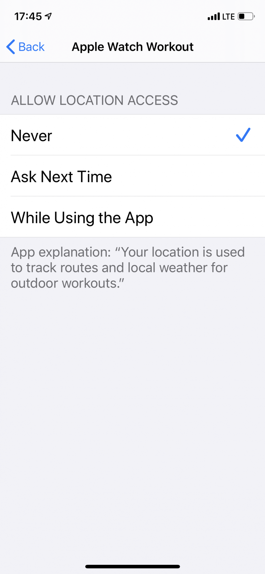 But now, I can't find the Workout app under the Location Services tab in Privacy... Watch Faces is there, but... Workout? Nothing...