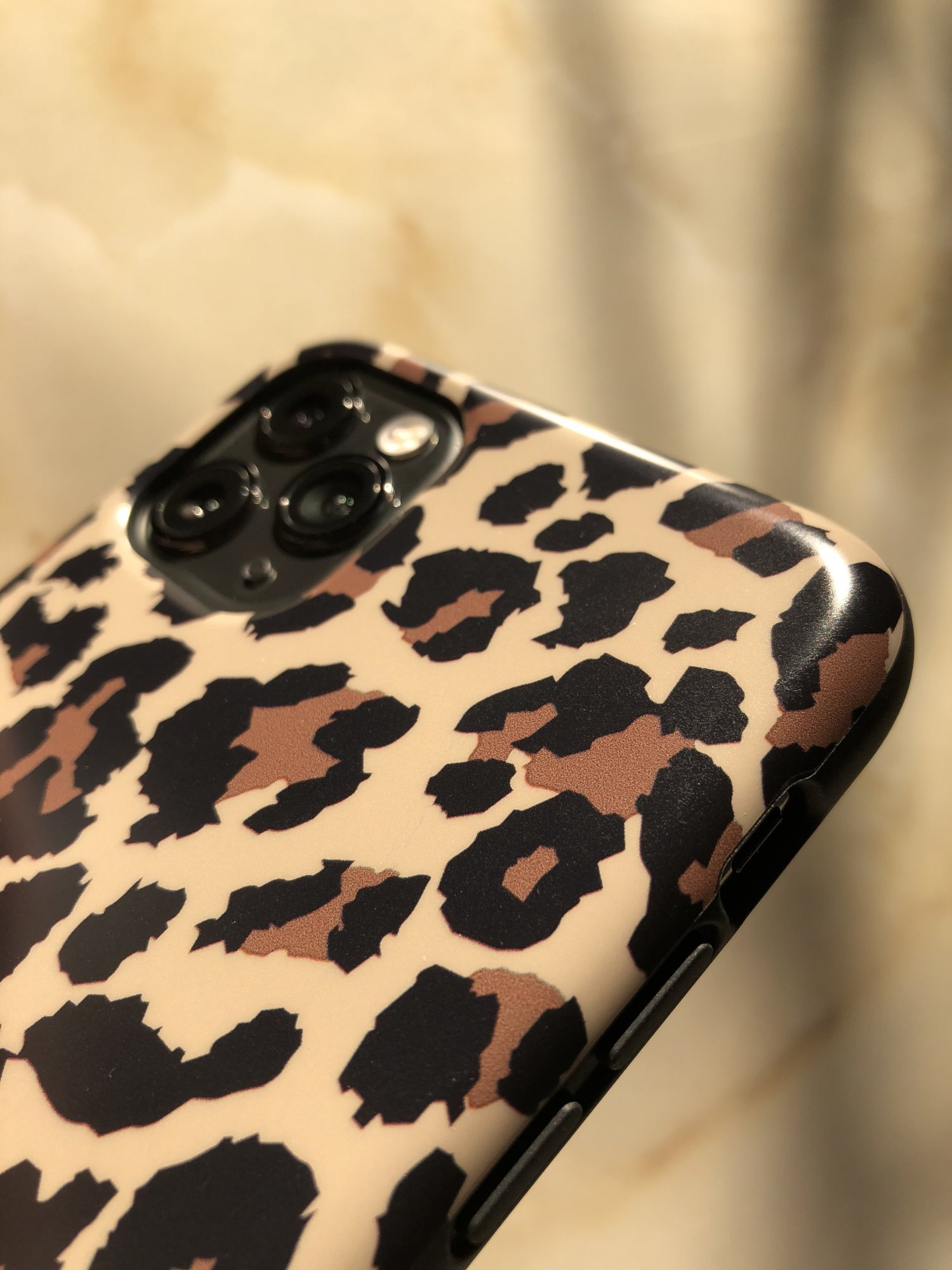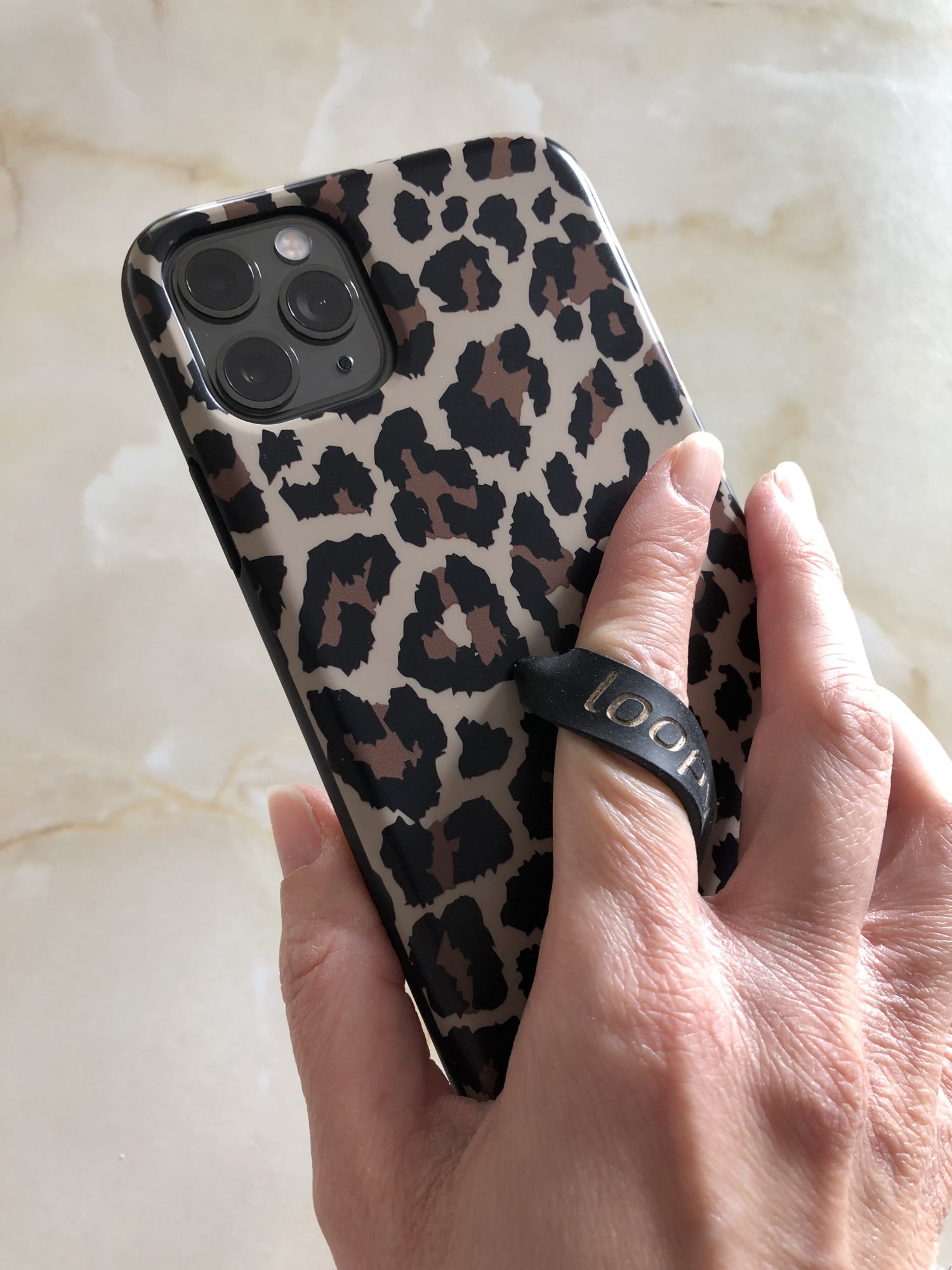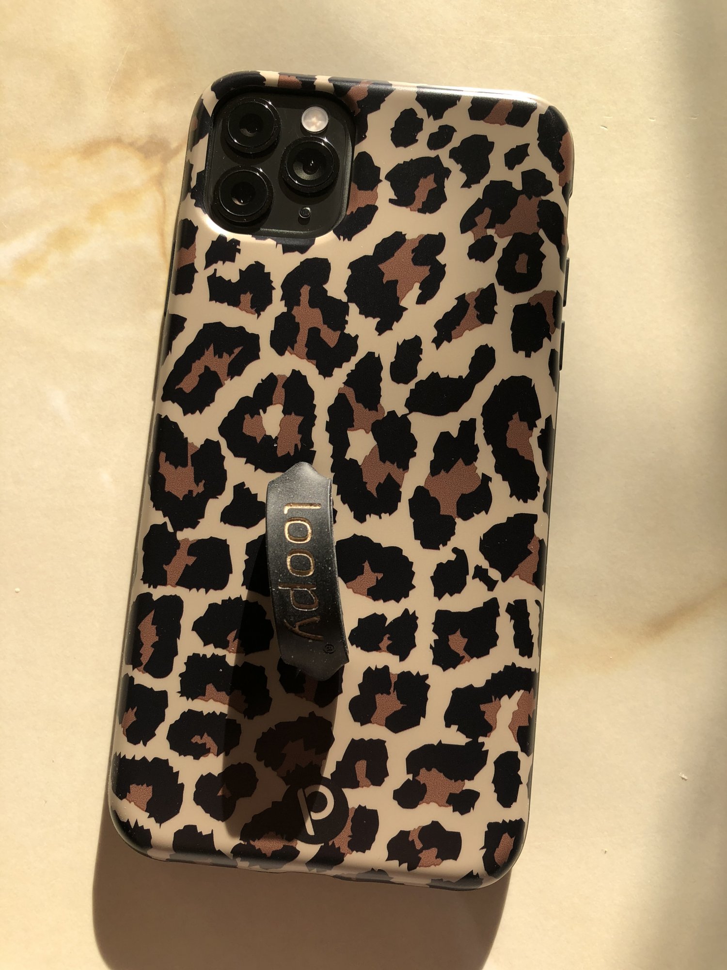 Loopy case in leopard design. Absolutely love it! Feels really nice in the hand with a soft, plasticised texture on the back which helps with grip. Good coverage around the edges of the phone but doesn’t interfere with use. Camera lenses are well protected and buttons are tactile.