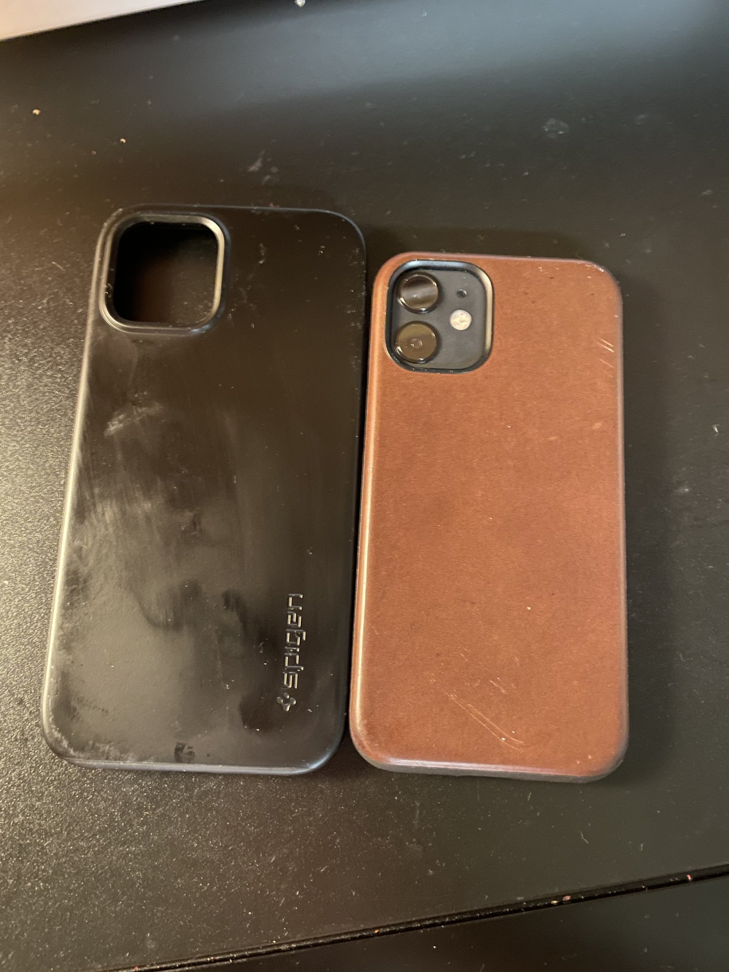 Nomad mini next to the spigen thin fit for the regular 12. This phone is so small!! Apologize for the crappy quality, I just got home and decided to take a quick pic. Yes, the thin fit is a grease ball.