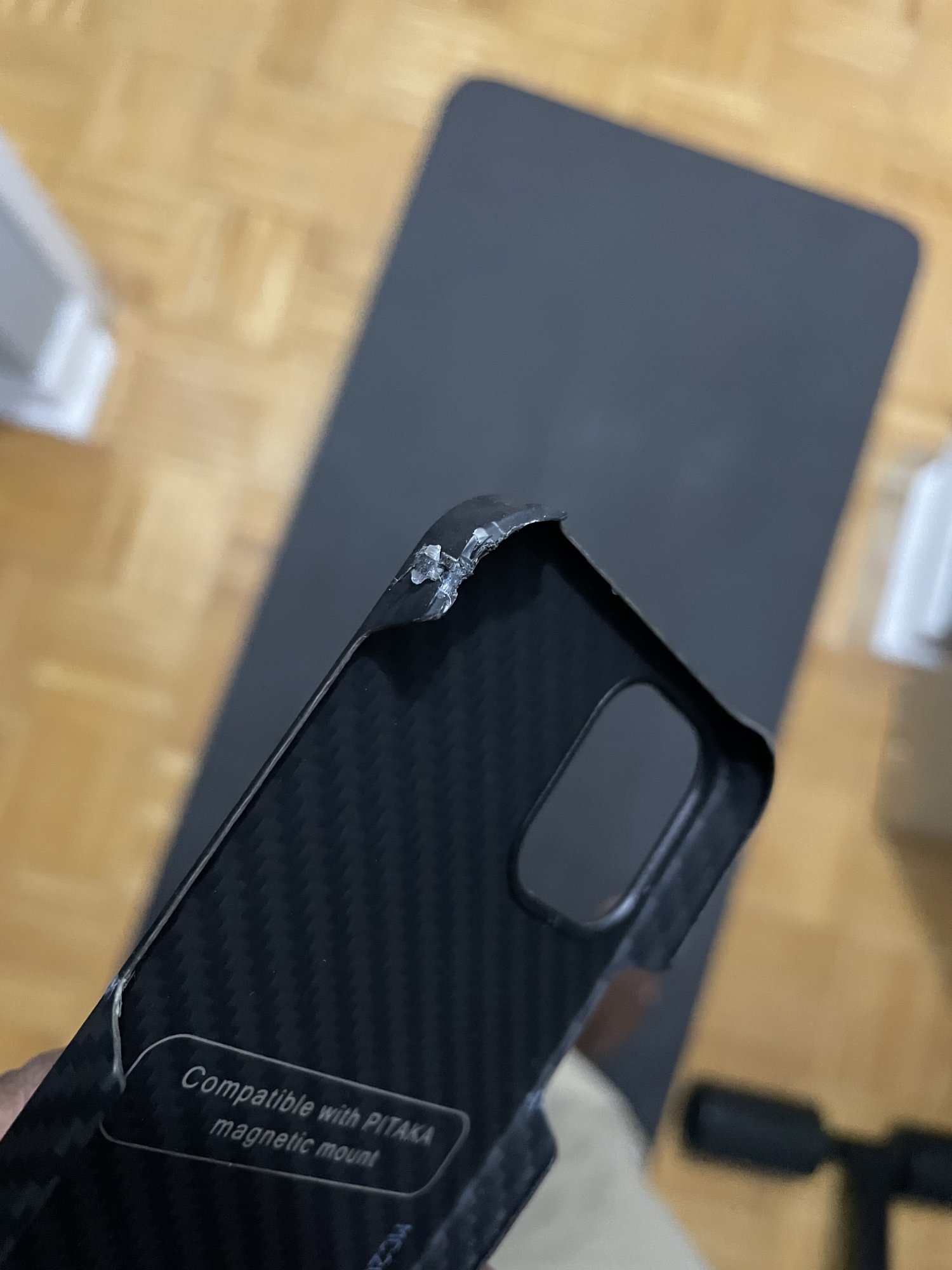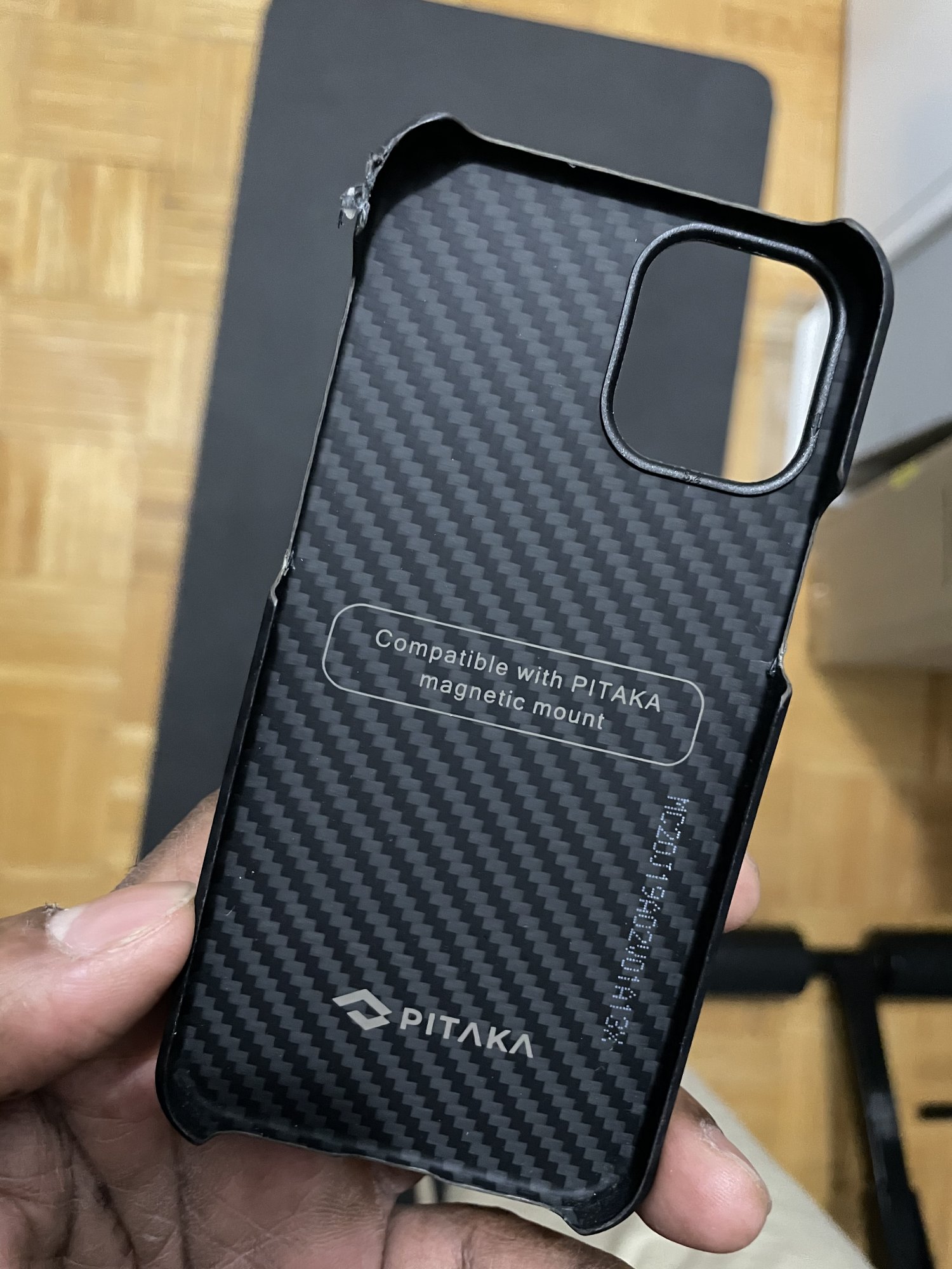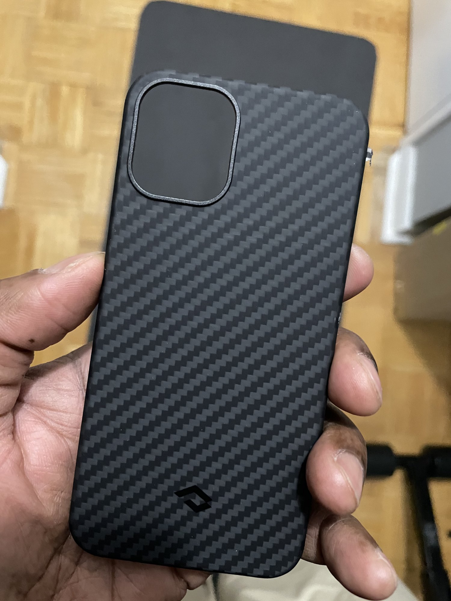 I order the Pitaka aramid (carbon look and feel) case back in November 2020, arrived 2021. Got my iPhone 12 Mini in blue Thursday night and slapped on my DBrand Icons (blacked out) decal and came through perfectly. That lasted for 15mins - no pick and unfortunately after 20mins of trying, gentle at first and then just plain determination to get the Pitaka on ... damaged both the decal as well as the case. Lesson learned - never order your cases too far in advance before purchasing your iPhone.