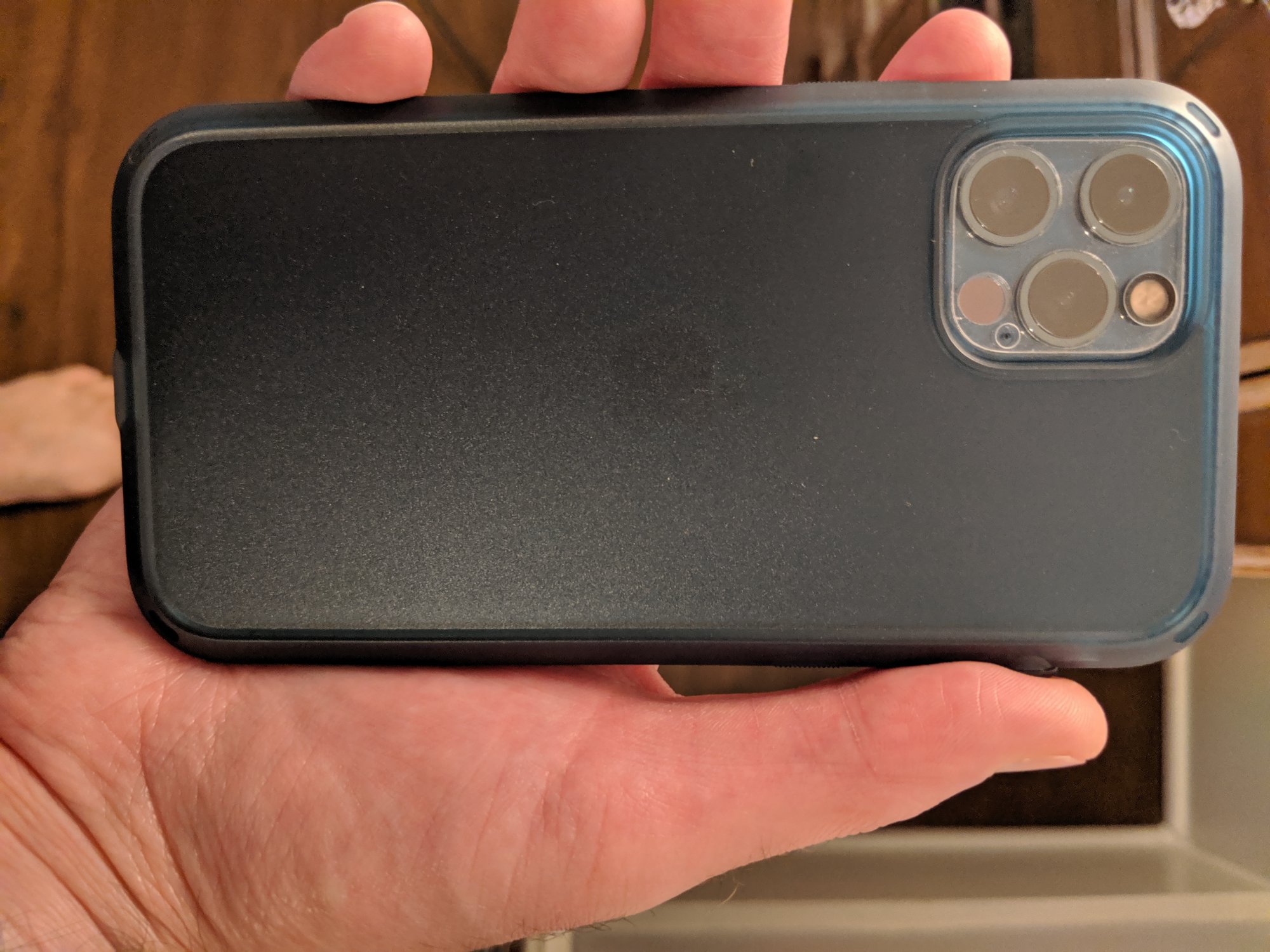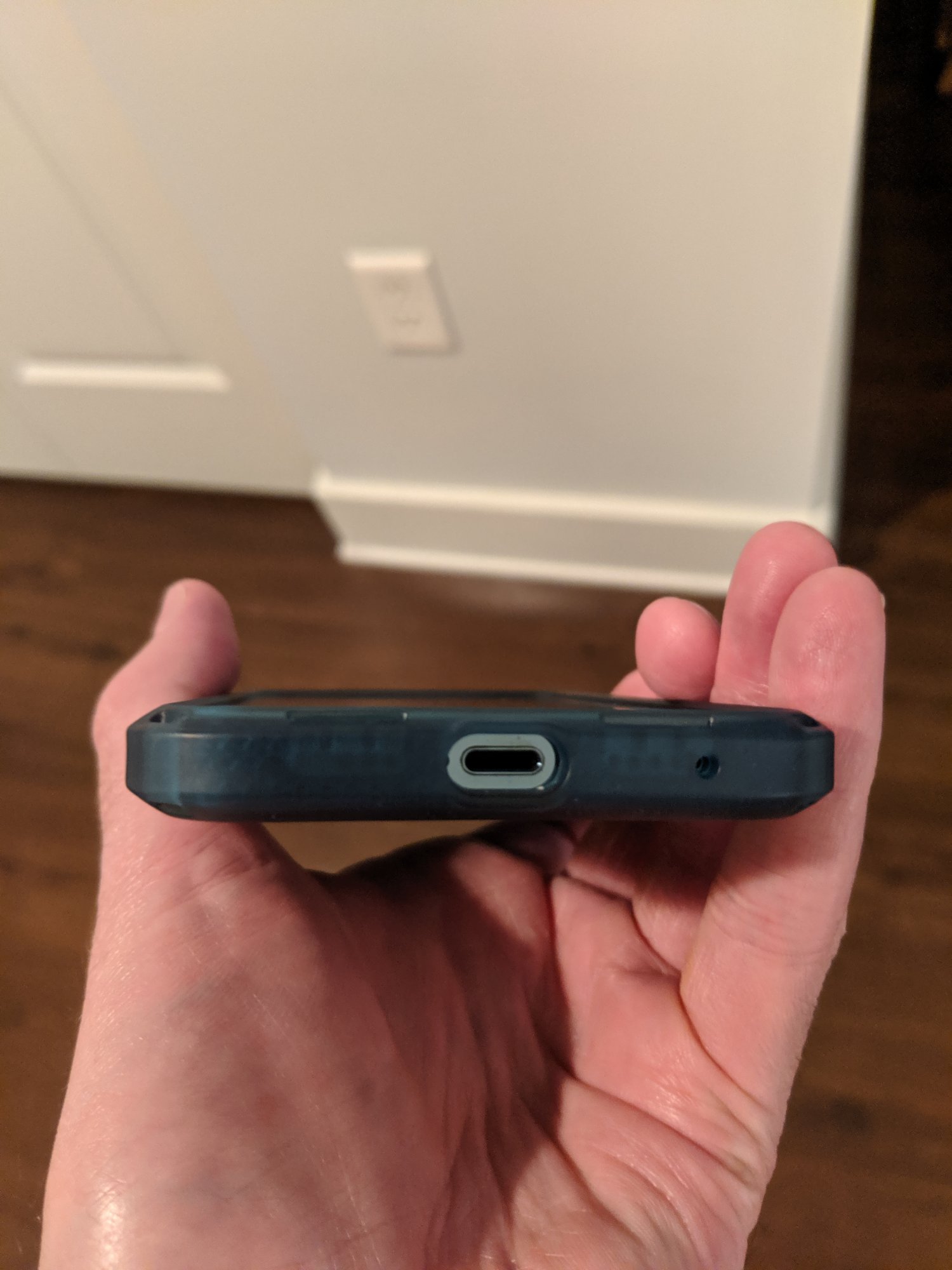 Here you go.. These are not the clearest pics and the lighting is a bit poor, but this give you a good idea. The hole is pretty obvious in one of the pics. So for anyone curious about any of the catalyst cases(Vibe, Influence, Protection), its the same hole. I was told it was simply added to the new 2021 cases to rectify any issues some were having with their speakerphone. As you can see it's below the right speaker. Like I said before, I prefer it over the Stealth Black Influence. It really compliments the pacific blue pro very well. The buttons are now great. I obviously would prefer to be without that hole below the right speaker, though it doesn't even compare to the unnecessary large cutouts on some cases mentioned on this thread. This is now my daily driver.