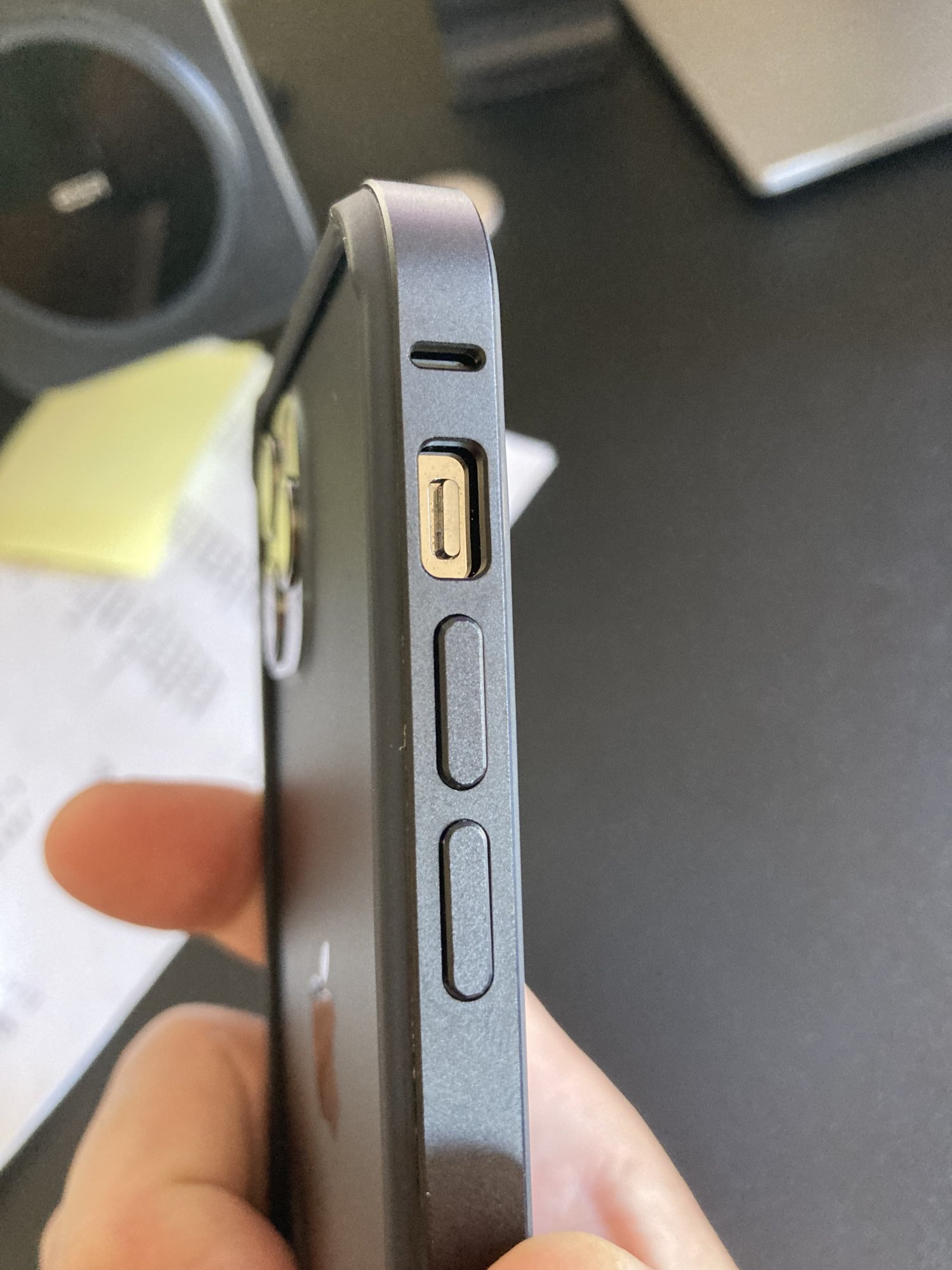 Wow that camera hump is hideous, looks like same charcoal colour as my 12 pro max black leather? Or a bit blacker? Are the button recessed a bit?It's the Black Leather Case.