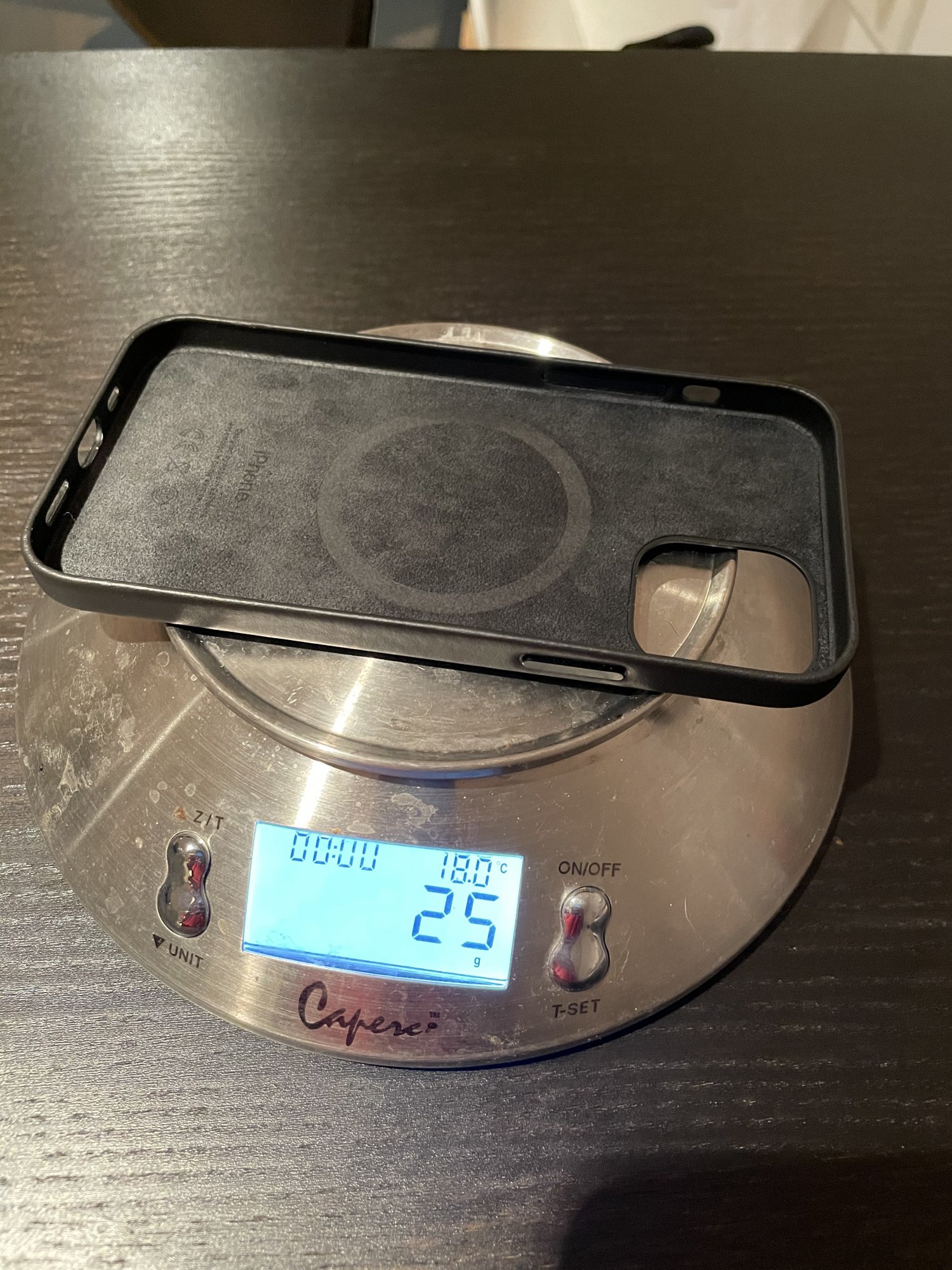 It is exactly the same weight as the ESR leather case, also 25 grams... This makes me wonder how they fit in the magnets for MagSafe and still stay at 25 grams...