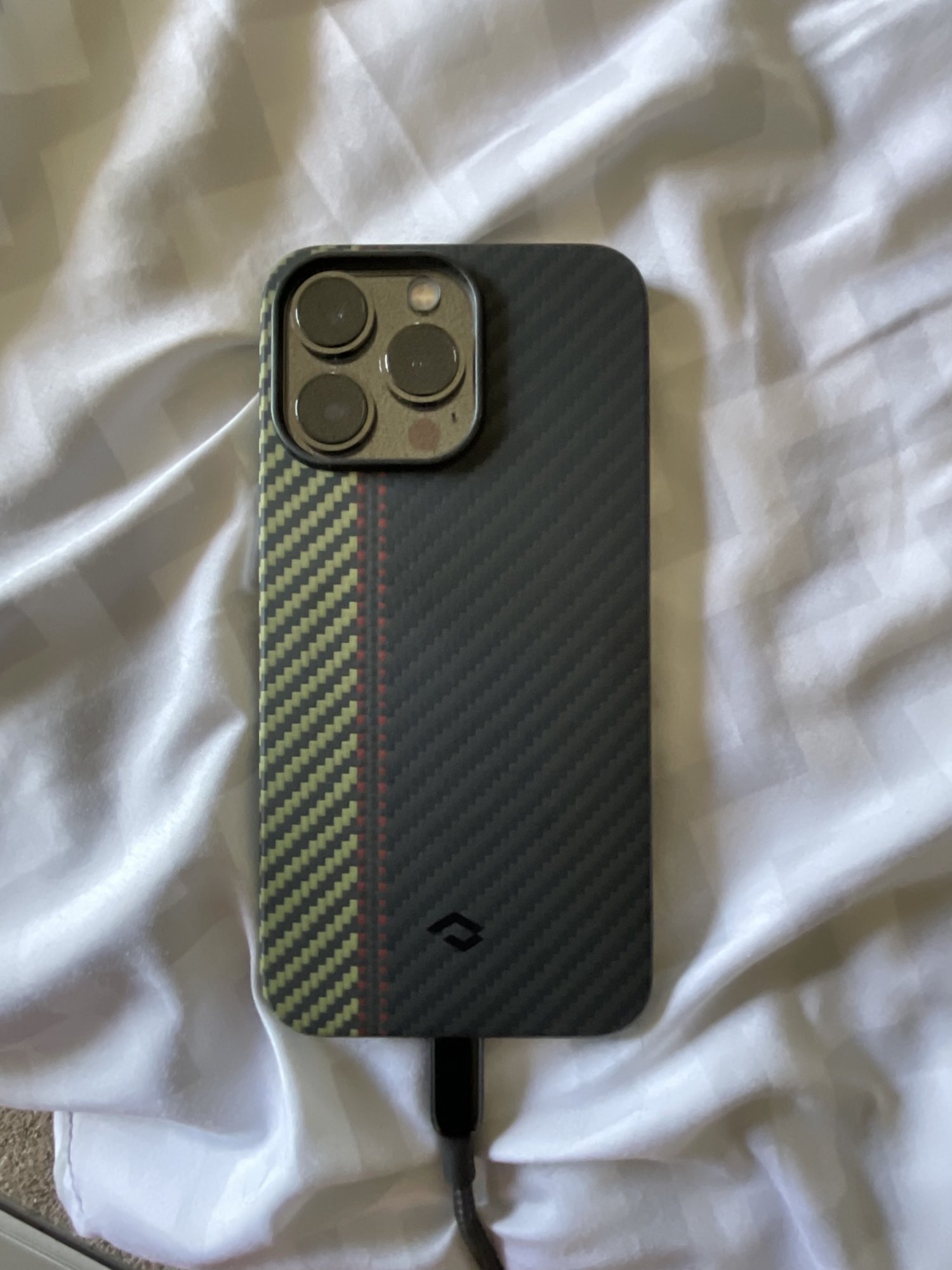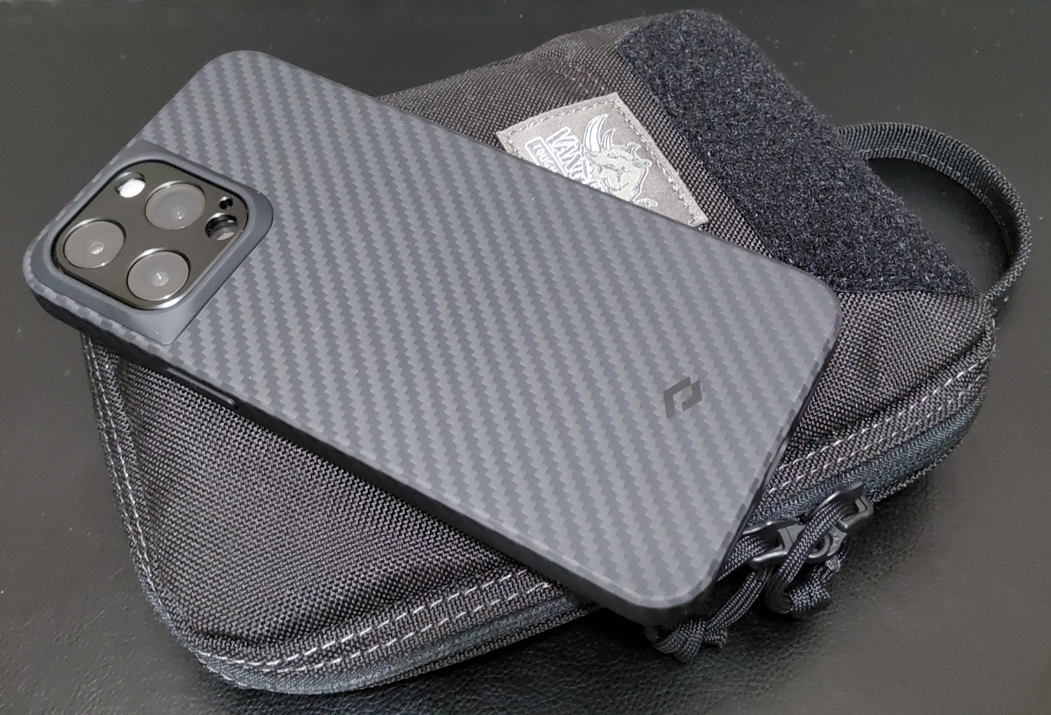 Pitaka MagEz Pro case in today for the 13PM. Very high-quality case that adds hardly any bulk to the phone. Fits really tight to the phone and looks like a million dollars (before fingerprints/smudges) show up. The only cons are, symmetrical cutouts, slits on sides of buttons, real square sharp feeling in hand and the fingerprint/smudge/grease marks the aramid fiber attracts on the back. Here are a couple quick pics: