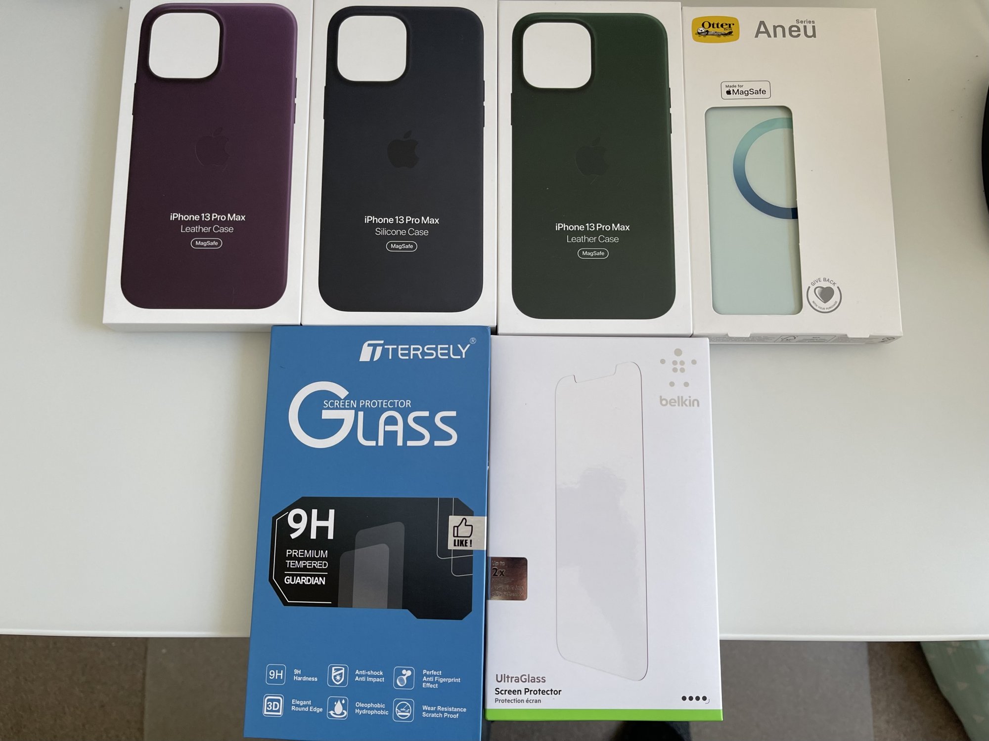 So far I have the ESR metal kickstand case and ESR screen protector. Have a MagSafe caudabe sheath preordered and deciding on Apple case. Figure I might grab a MagSafe wallet during in-store pickup and I can slap it on when needed.