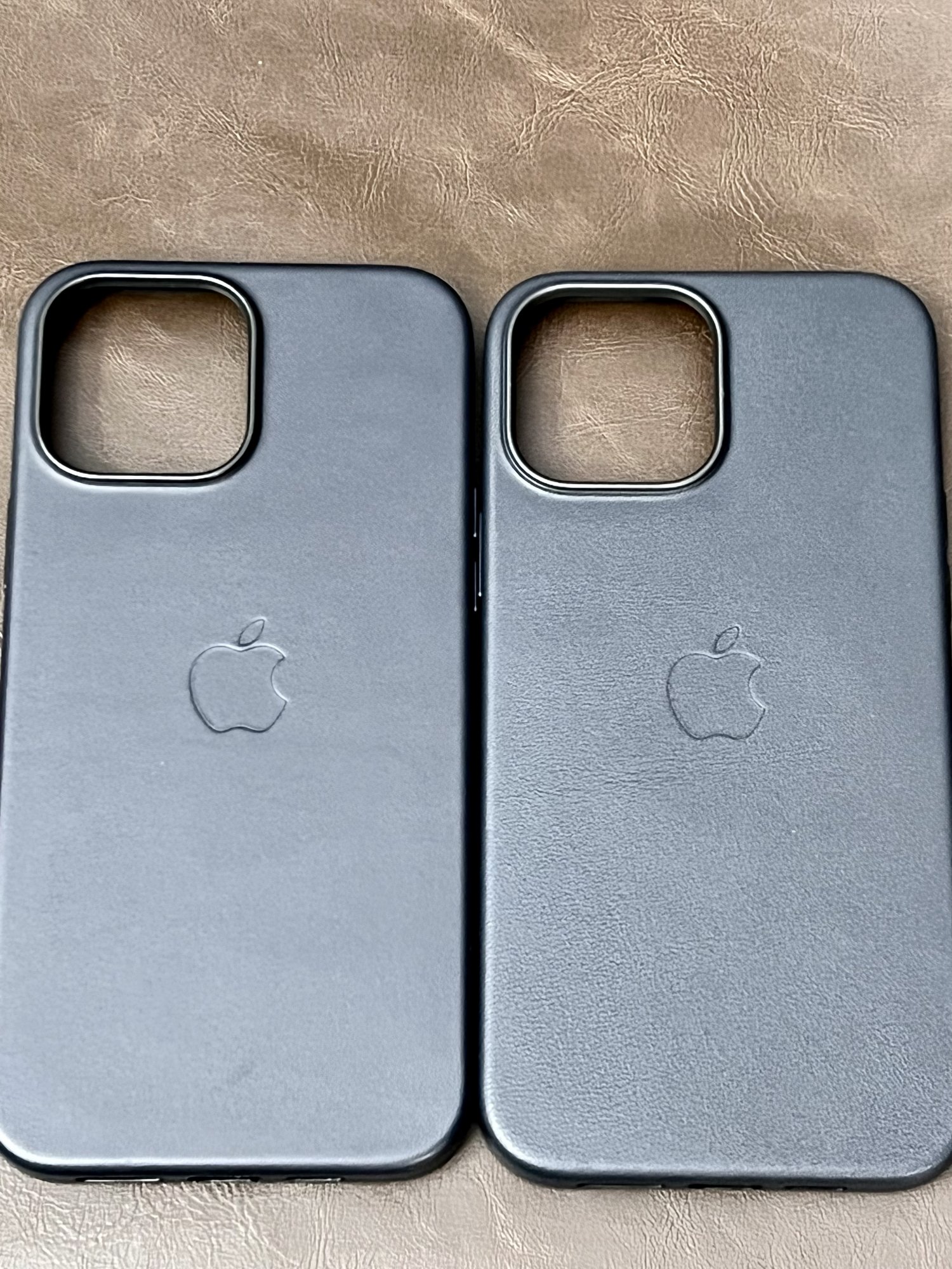 Here’s a great shot showing the variation in these new leather cases. Same Midnight leather case but the grain is very different.