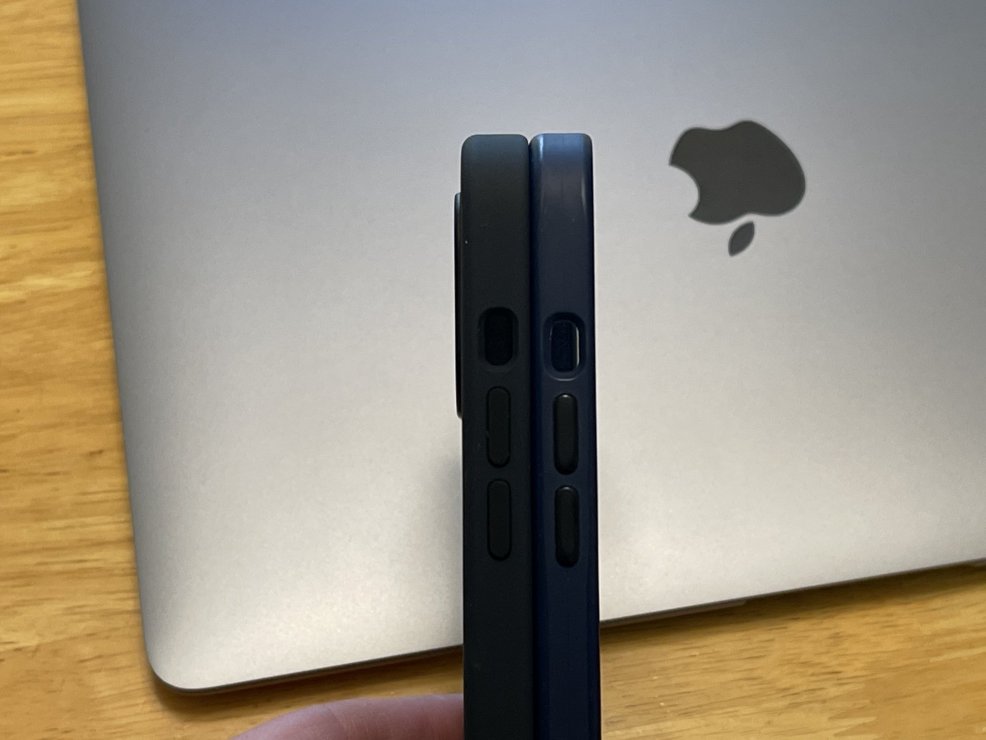 case is thicker tooI always like the grip of the apple silicone cases so that’s what I got for my 13pm. Here’s it compared to my 12pm silicone case. The 13pm silicone case feels sturdier, but that could be because my 12pm case is used. Also, the 12pm fits in the new case fairly well. There’s just a slight gap on the side of the camera cutout due to the 13pm camera bump being larger.