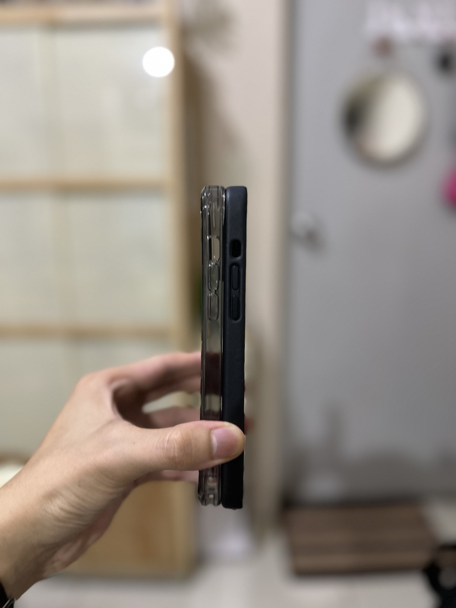 Ringke Fusion matte smoked + ESR halolock ring combo. the case has a bit less width compared to 13PM.