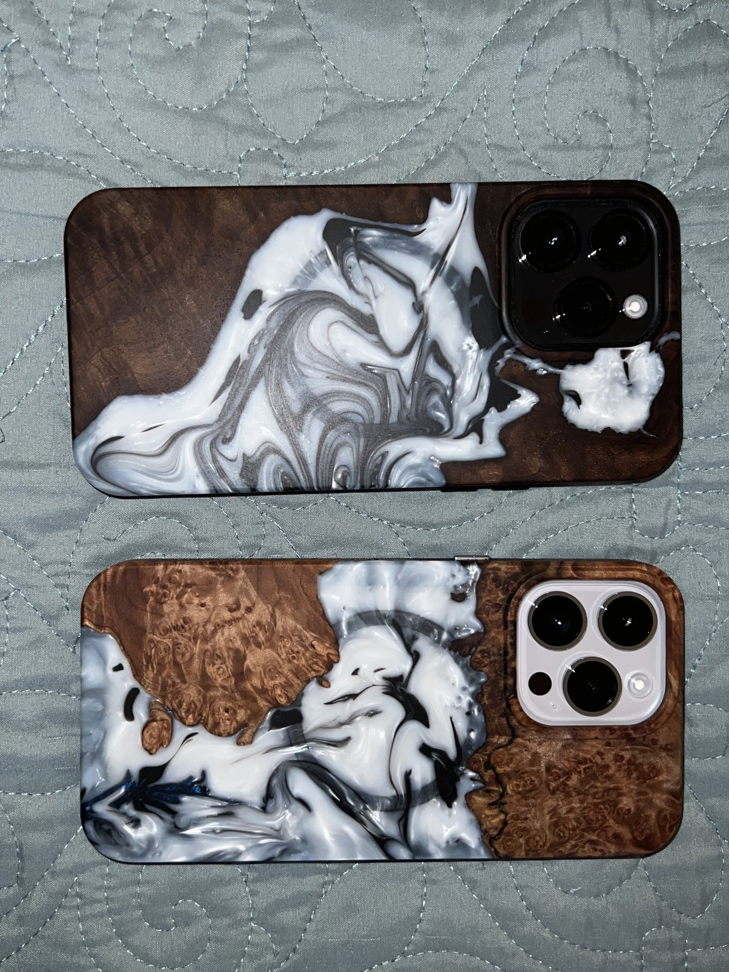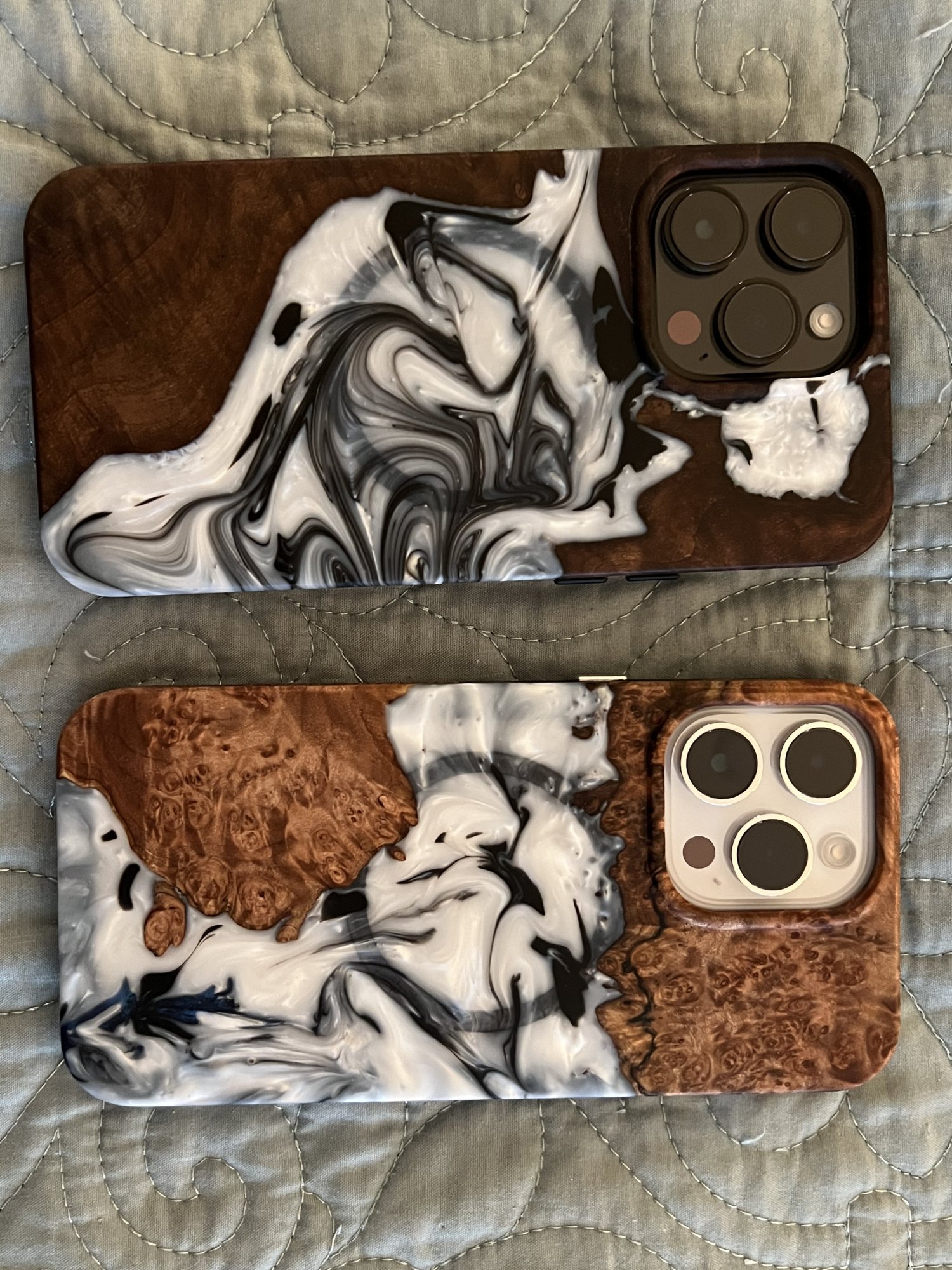 I added 2 more to my Carved collection… I’m not going to upgrade this year so I splurged on a Live Edge case. Pictures do not do this case justice (it was cloudy when I good this pic) and I got another Galaxy case since these were a limited style.