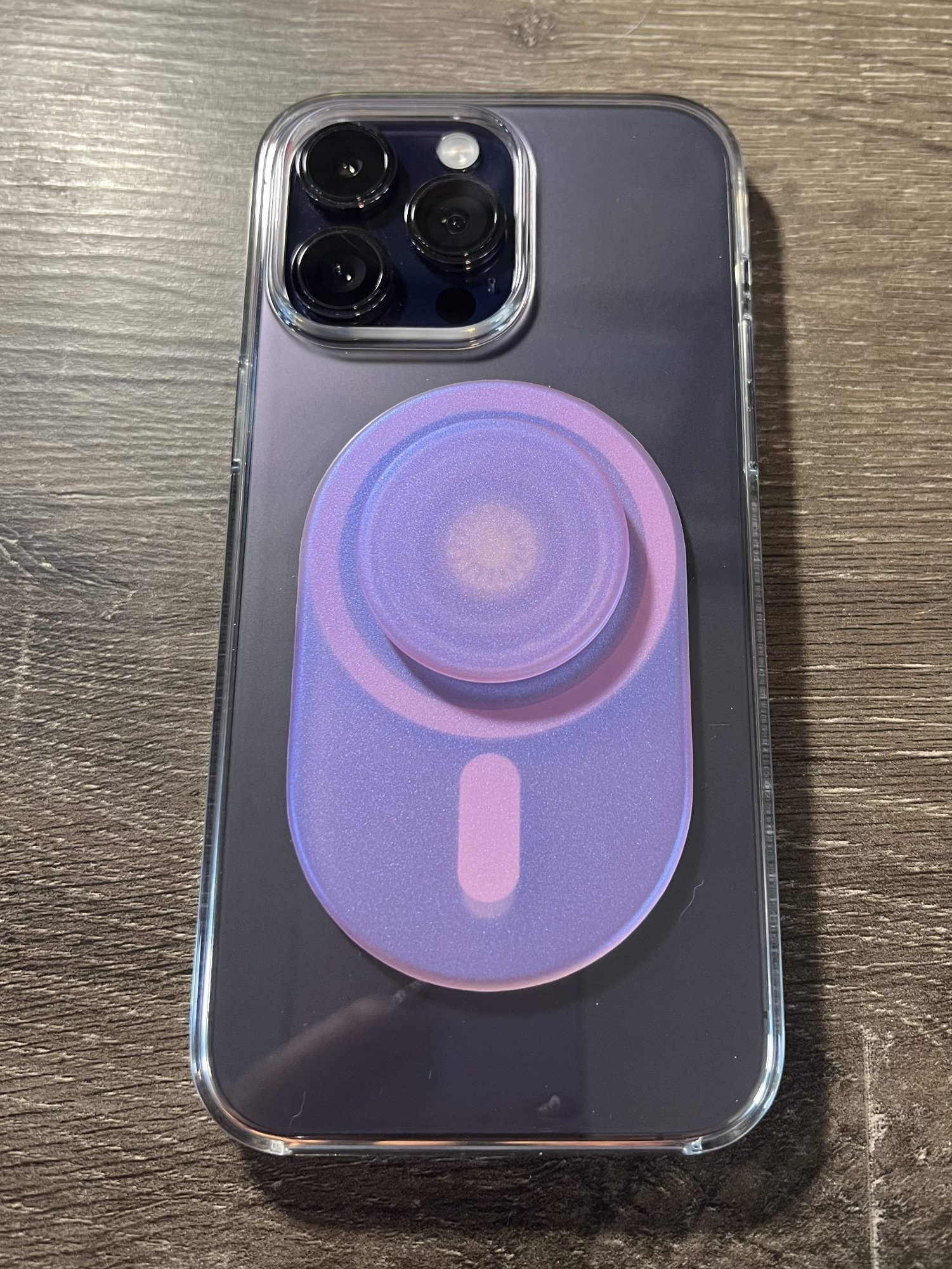 I like how the wallet looks with that clear case. I have been considering the clear case — how does this fit? I tried the Apple clear on my 13PM and it had this annoying squeaking sound when I press certain parts of it (or when I’m typing). Maybe this was a fluke, but otherwise I liked it. Considering this or a few Otterbox clear cases for my 14PM.