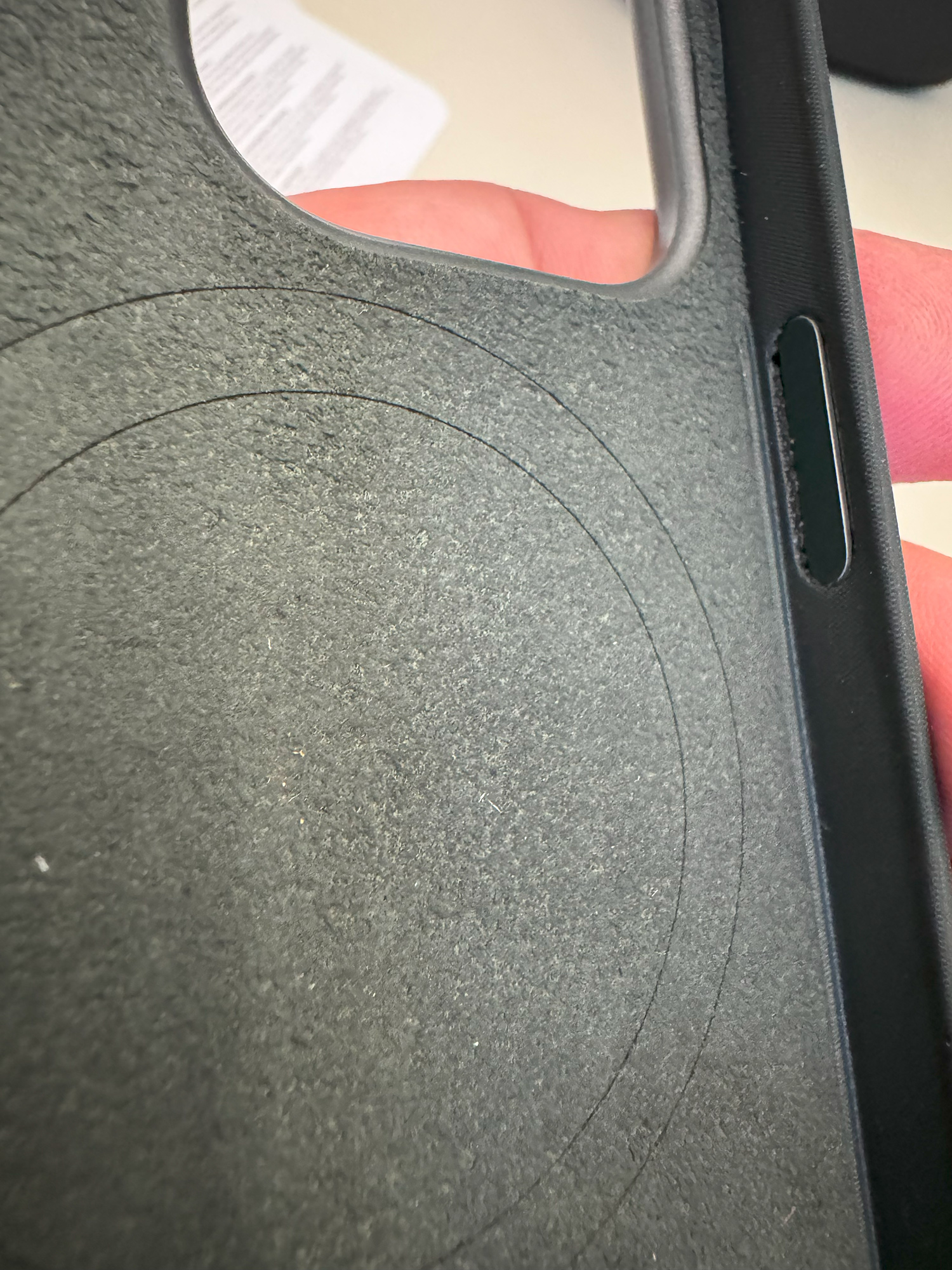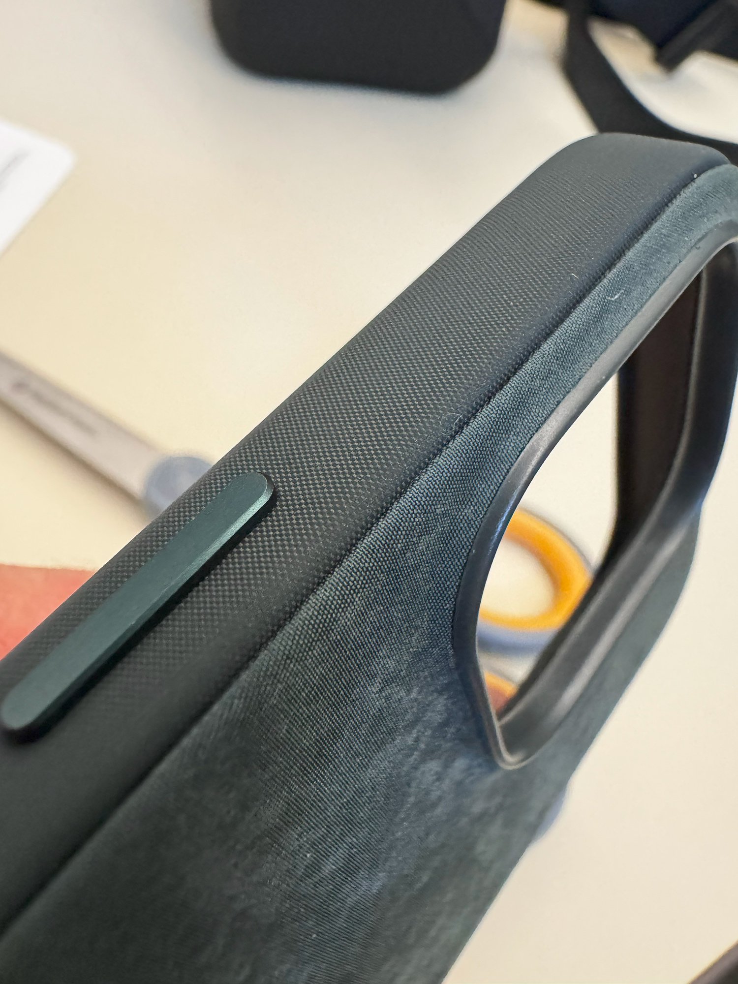 3) The case is much more muted than the real Fine Woven evergreen case (which is actually quite saturated)...it's almost gray, but with the slightest hint of green. Honestly, it sort of matches Apple's photos more closely than Apple's actual cases do.